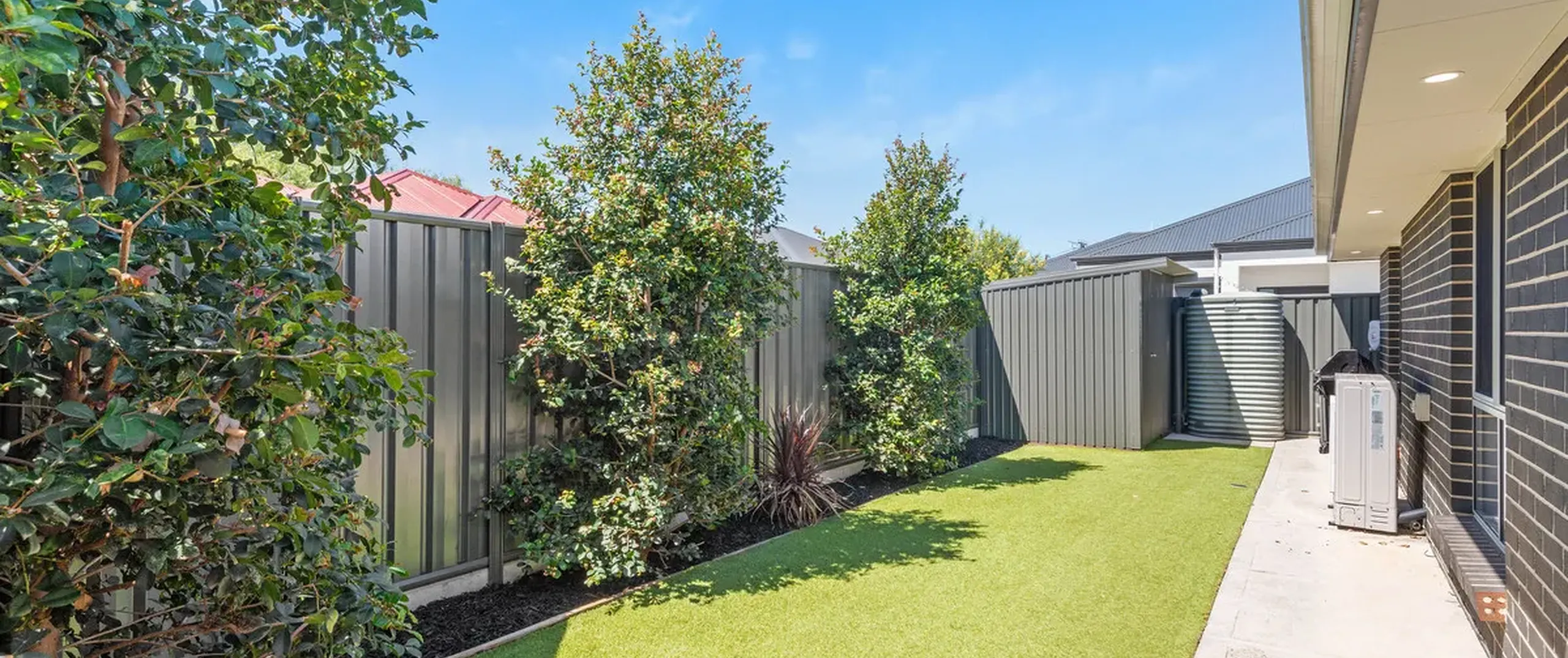 - Manicured front and rear gardens with artificial turf