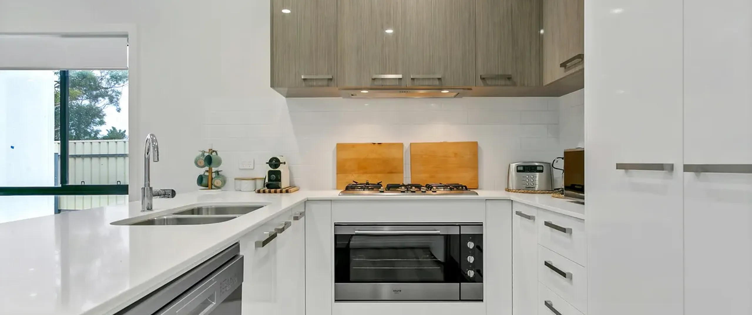 - Modern and stylish kitchen with gas cooktop, dishwasher, breakfast bar and ample bench and cupboard space