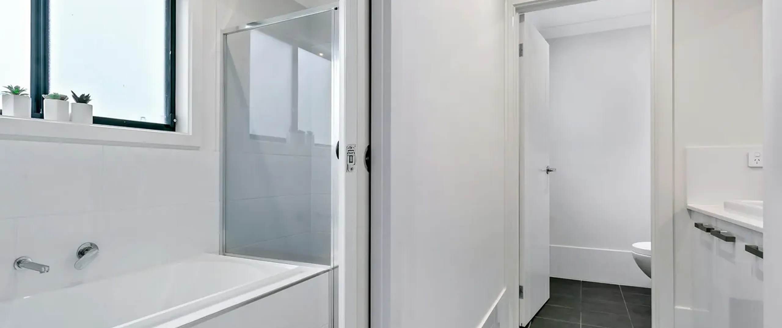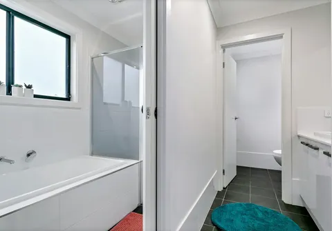 - Main bathroom with separate bath, shower + toilet