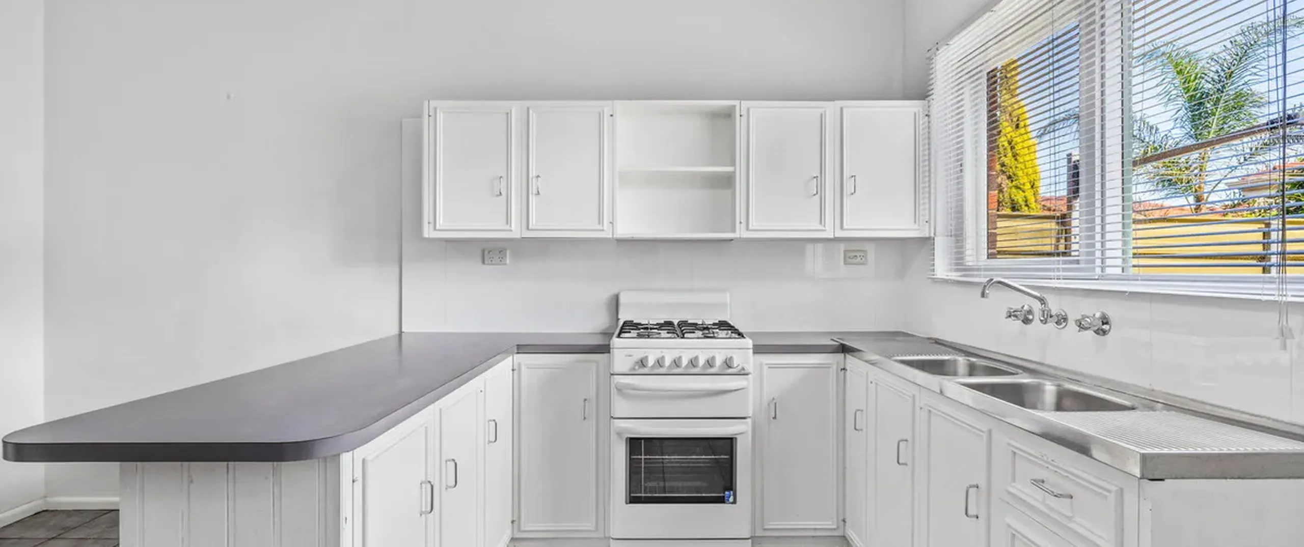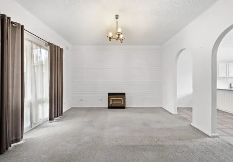 Seamless flow between the living spaces is on the lower level, with a spacious carpeted lounge and character style arches adjoining the kitchen and dining area. A neutral kitchen with gas cooking and plenty of cupboard and bench space, including a breakfast bar will please any avid cook.
