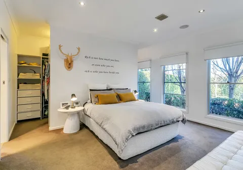 - Master bedroom with his and hers walk-in robes and deluxe ensuite