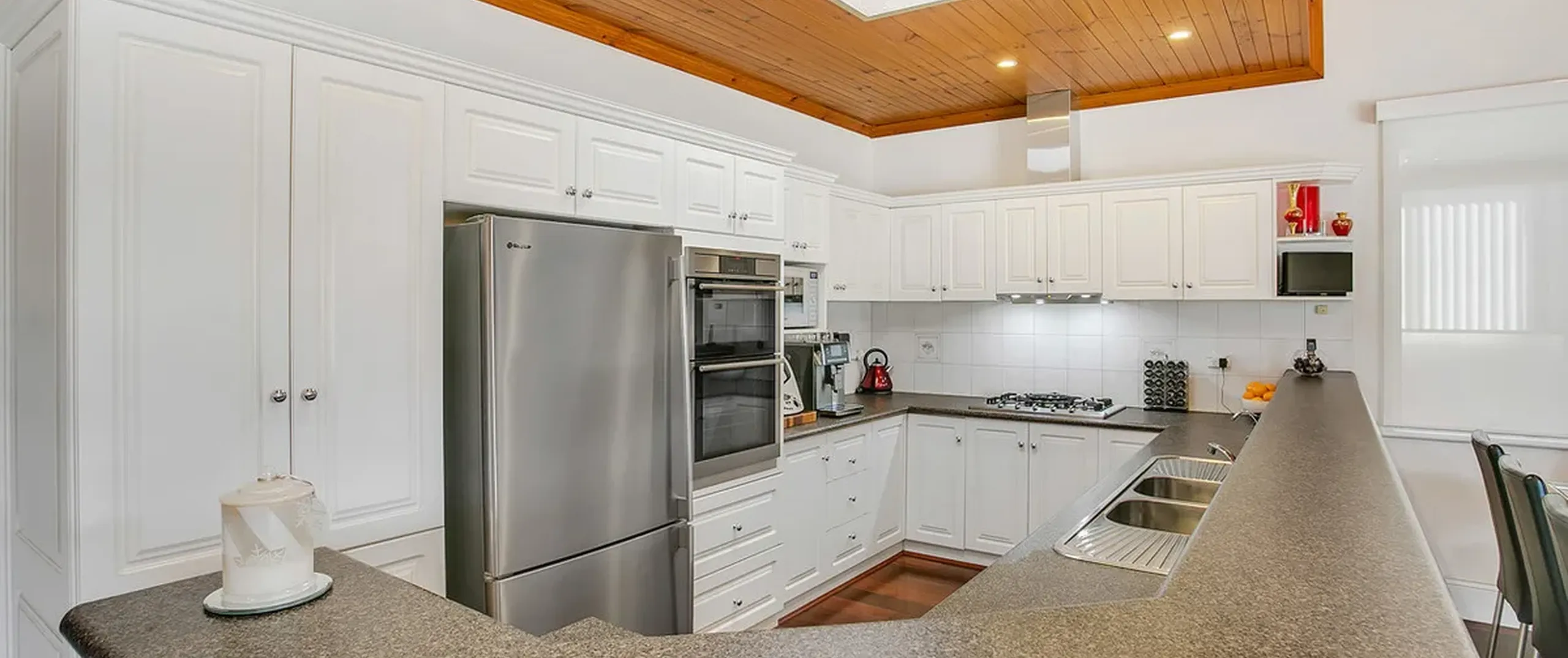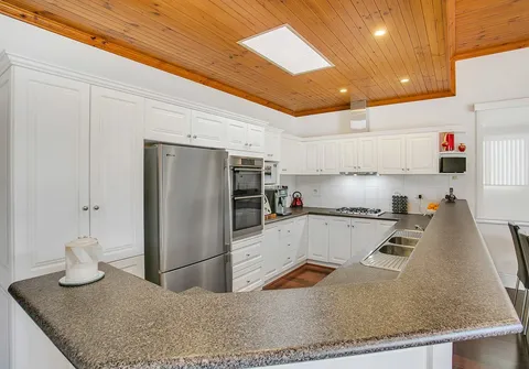 - Modern kitchen with dual AEG ovens, Miele gas cooktop, dishwasher and ample bench and cupboard space