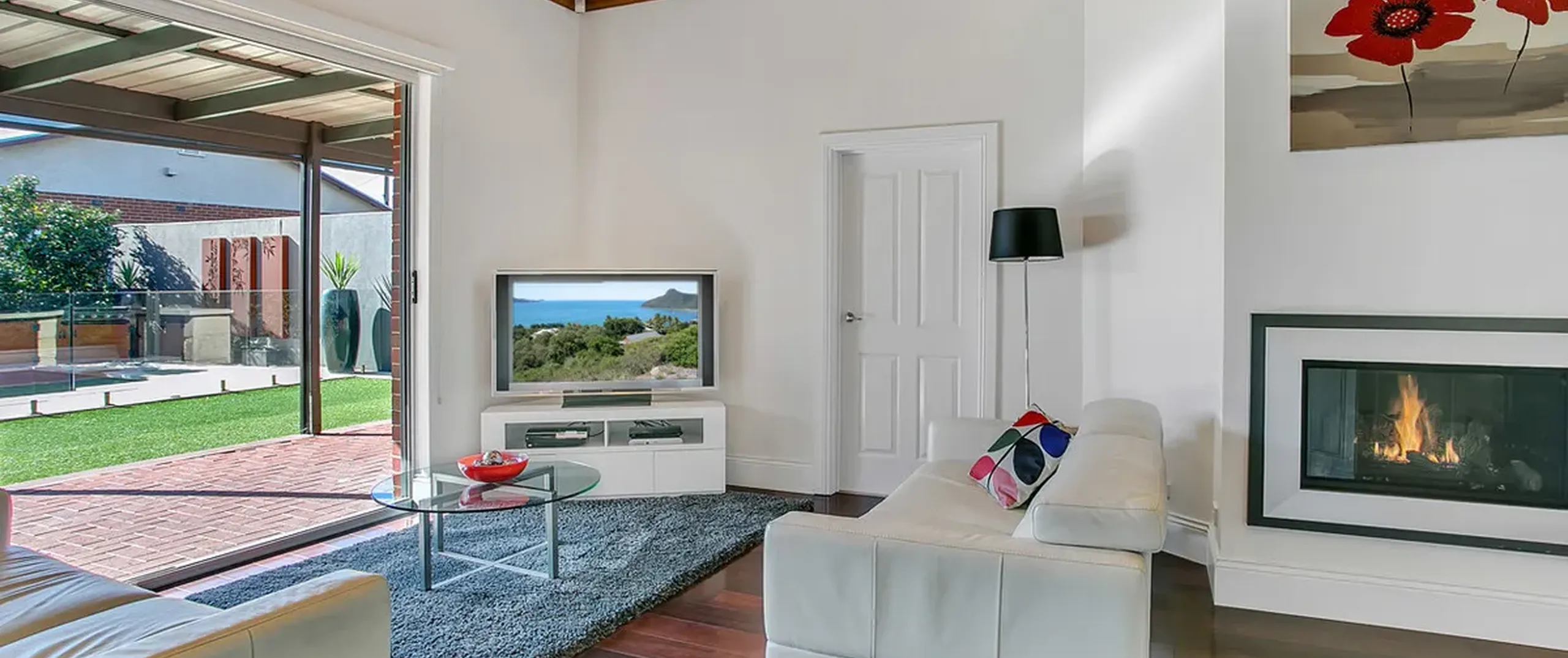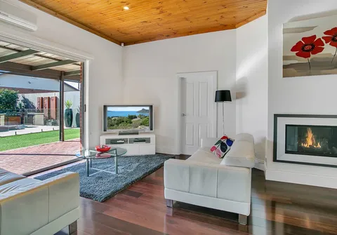 - Light filled, open plan family and dining area with gas fireplace and split system air conditioner