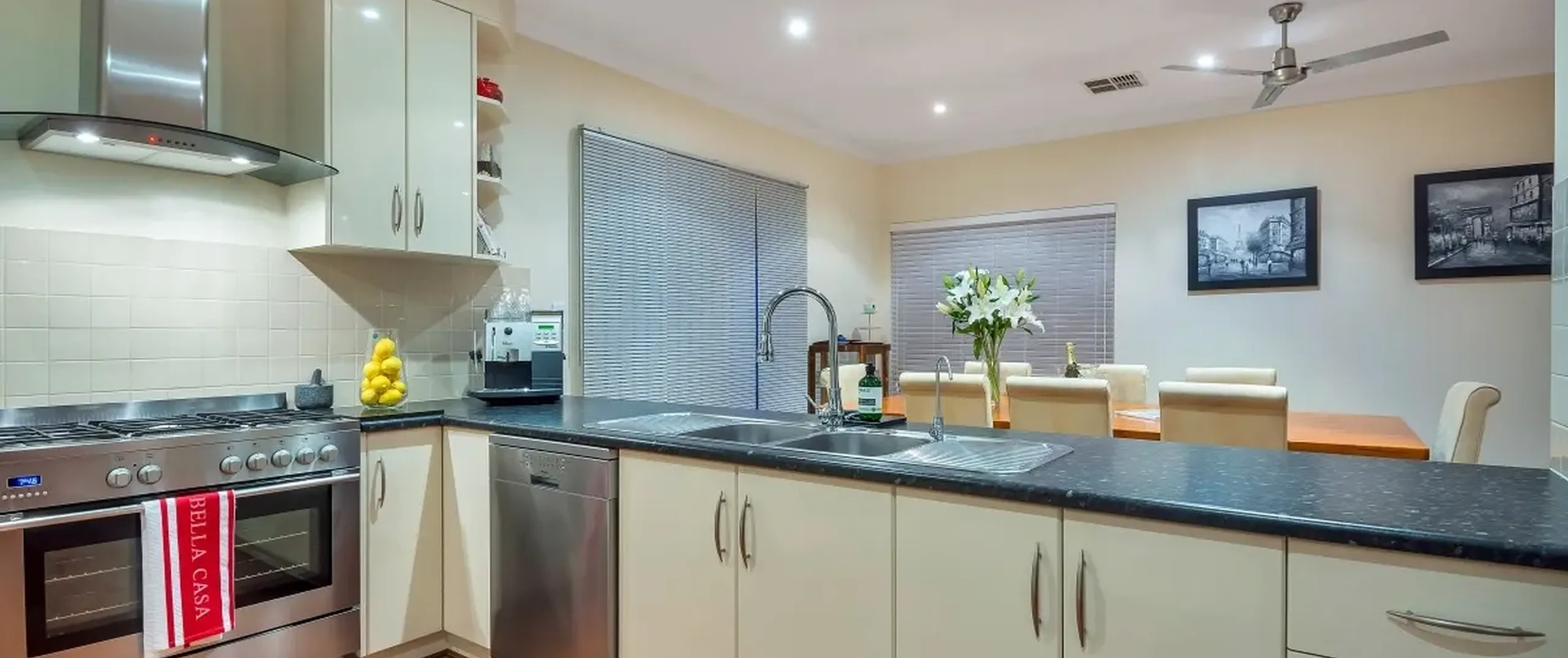 - Huge open plan family/meals area with ceiling fans