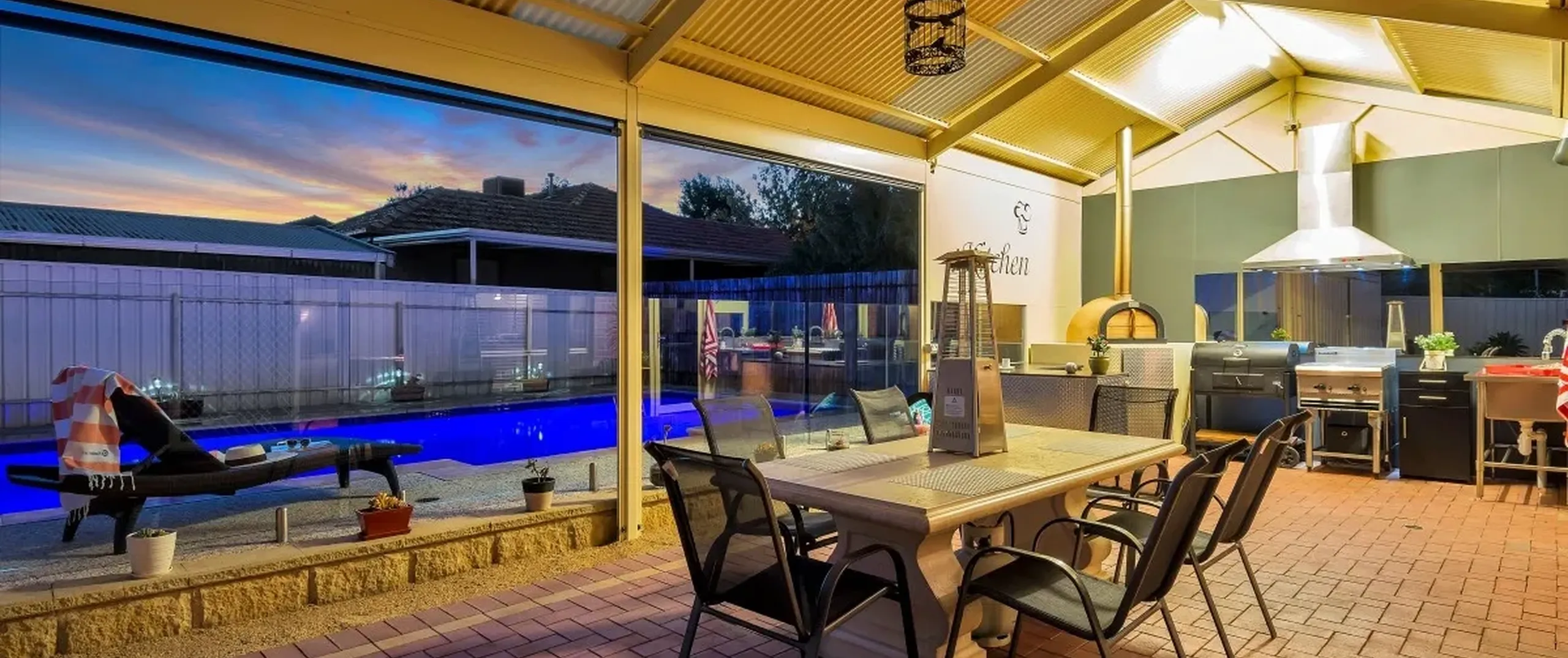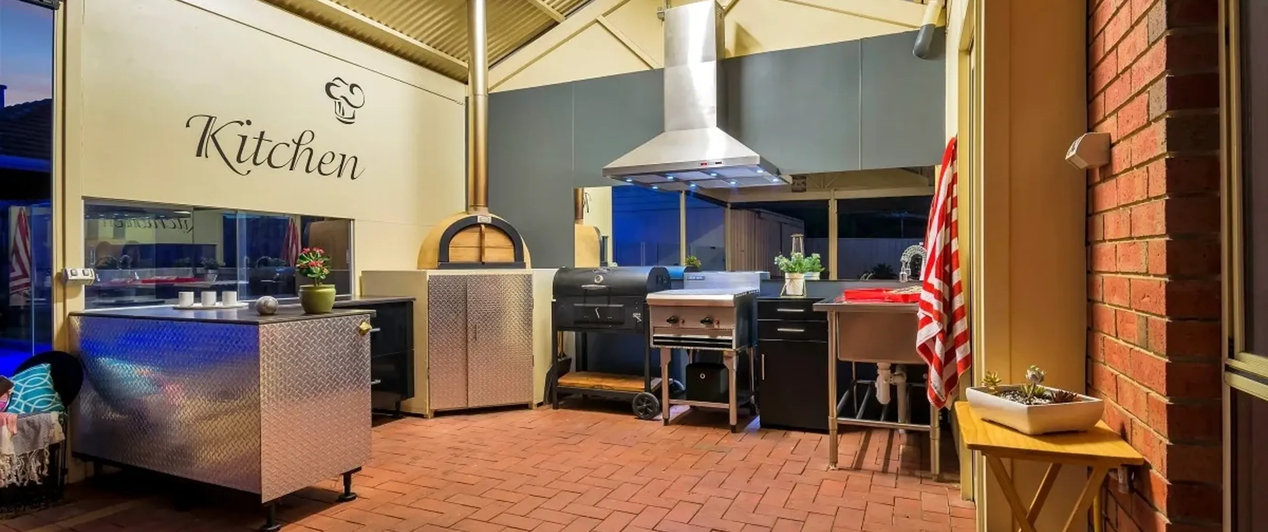 - Spacious patio with ceiling fan, outdoor kitchen and pizza oven, perfect for outdoor entertaining