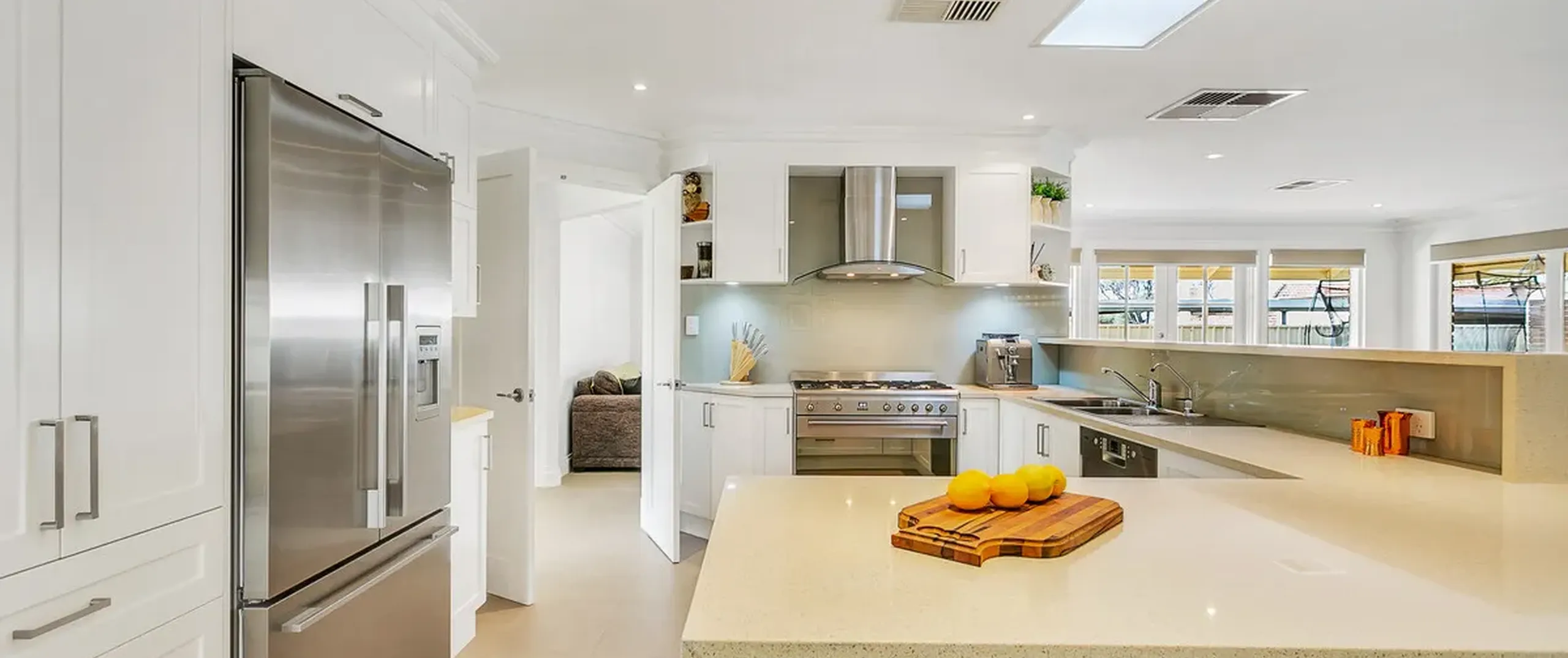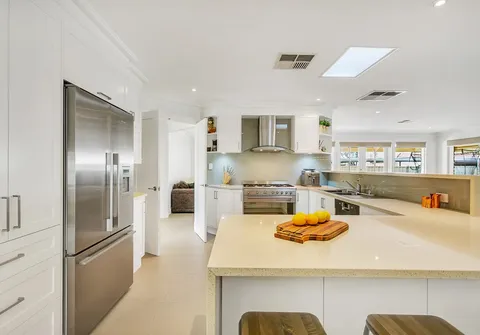 - 2pac Shaker profile kitchen with Caesarstone benchtops, 900mm Smeg gas cooktop and oven, Bosch dishwasher, ample cupboard space and breakfast bar