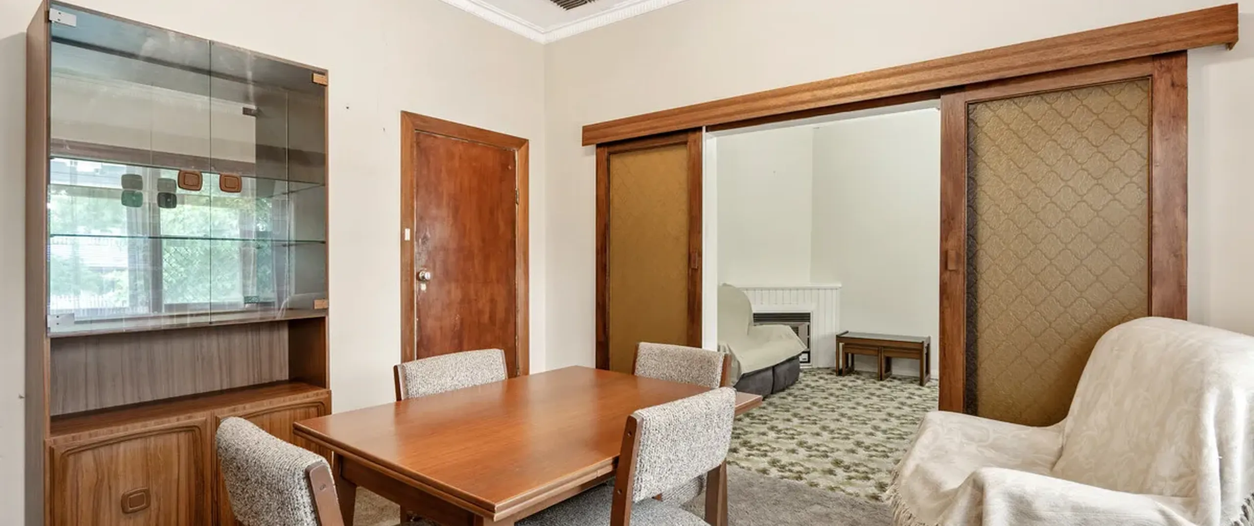 There’s a separate dining room with sliding doors to create a seamless flow through to the light-filled lounge room. The kitchen and meals area is sure to be the hub of everyday living with scope to be updated while any passionate renovator will adore the high ceilings and quaint details throughout.