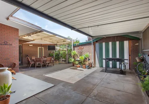 There’s a separate lounge room, with air conditioning that seamlessly connects to the dining room and a well-appointed kitchen, offering abundant storage and cupboard space with glass sliding doors opening to the entertaining area. Make the most of the extra kitchen/meals space and enjoy the convenience of four bedrooms all served by a centrally situated main bathroom.