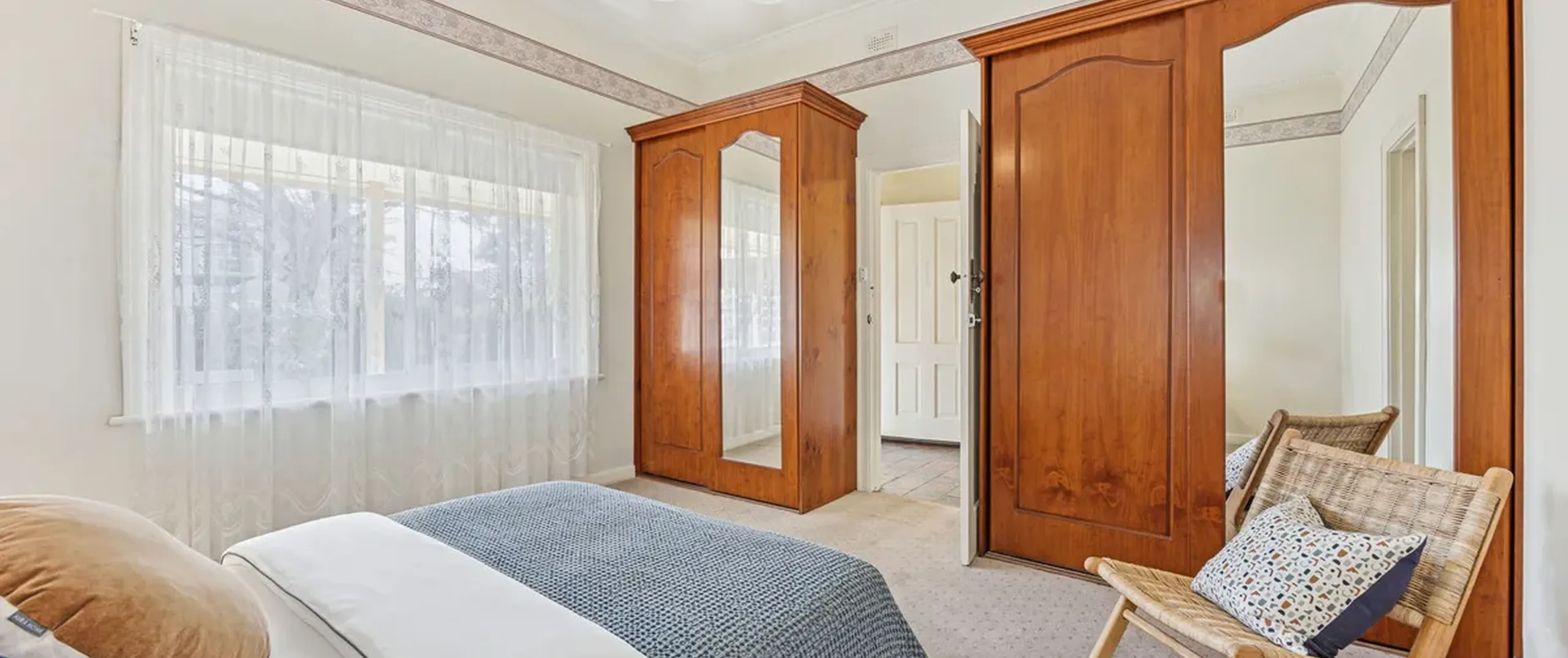 - Carpeted main bedroom with timber mirrored built in robes and direct access to two-way main bathroom
