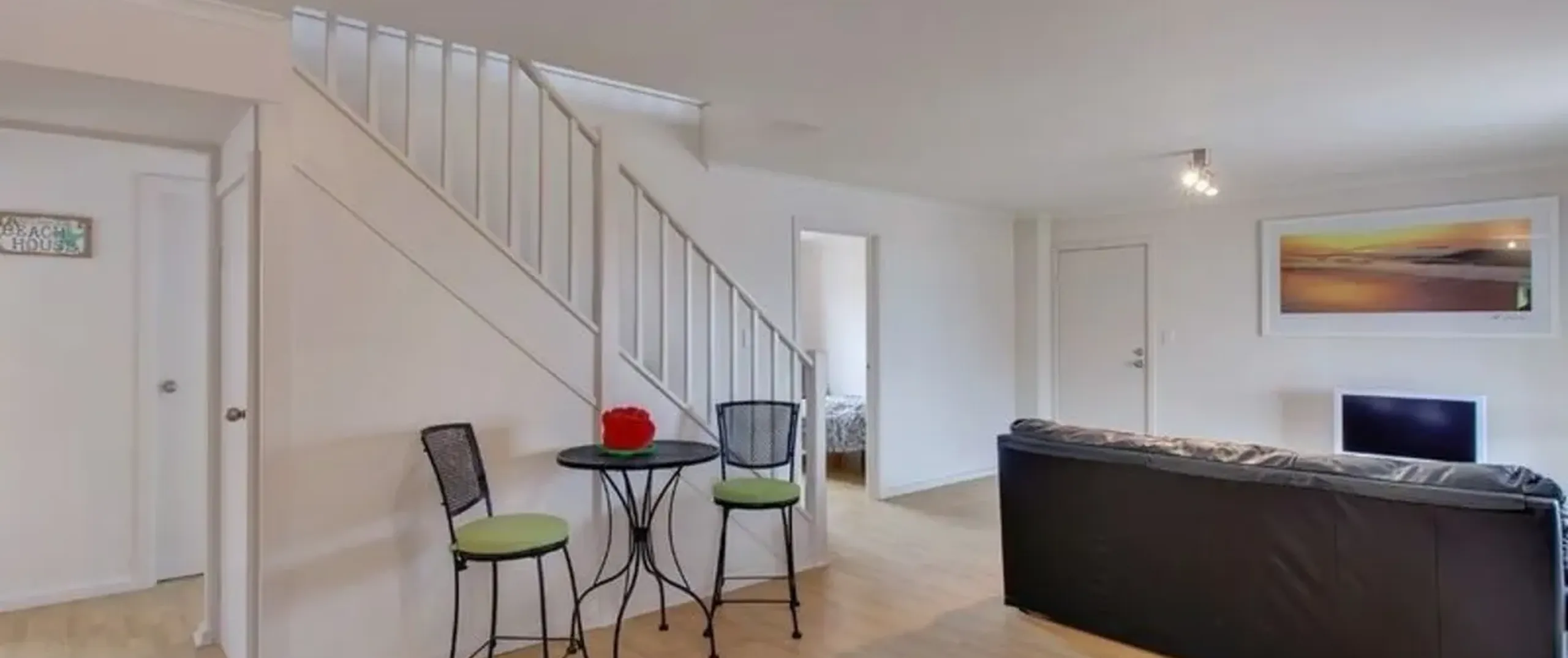- Spacious open plan living/dining + enormous balcony with sea glimpses