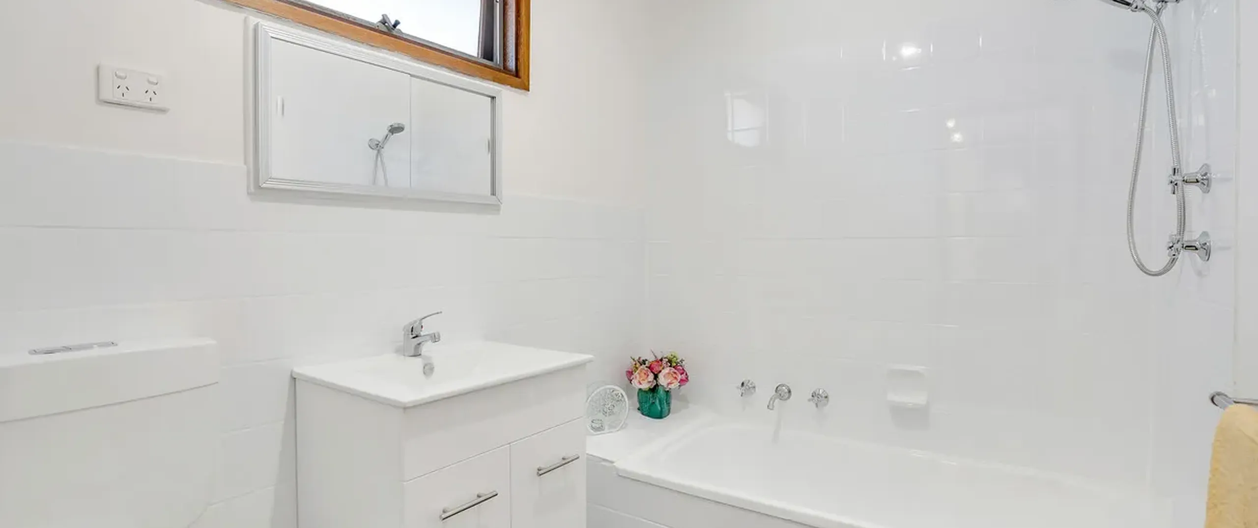 - Modern main bathroom with shower over bath