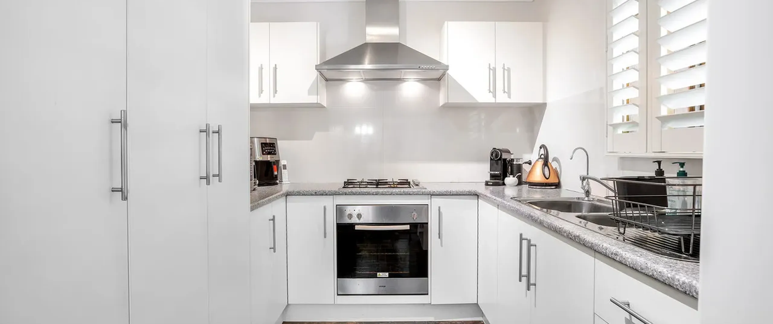 - Stylish kitchen featuring stainless steel appliances, gas cooking and ample cupboard and bench space