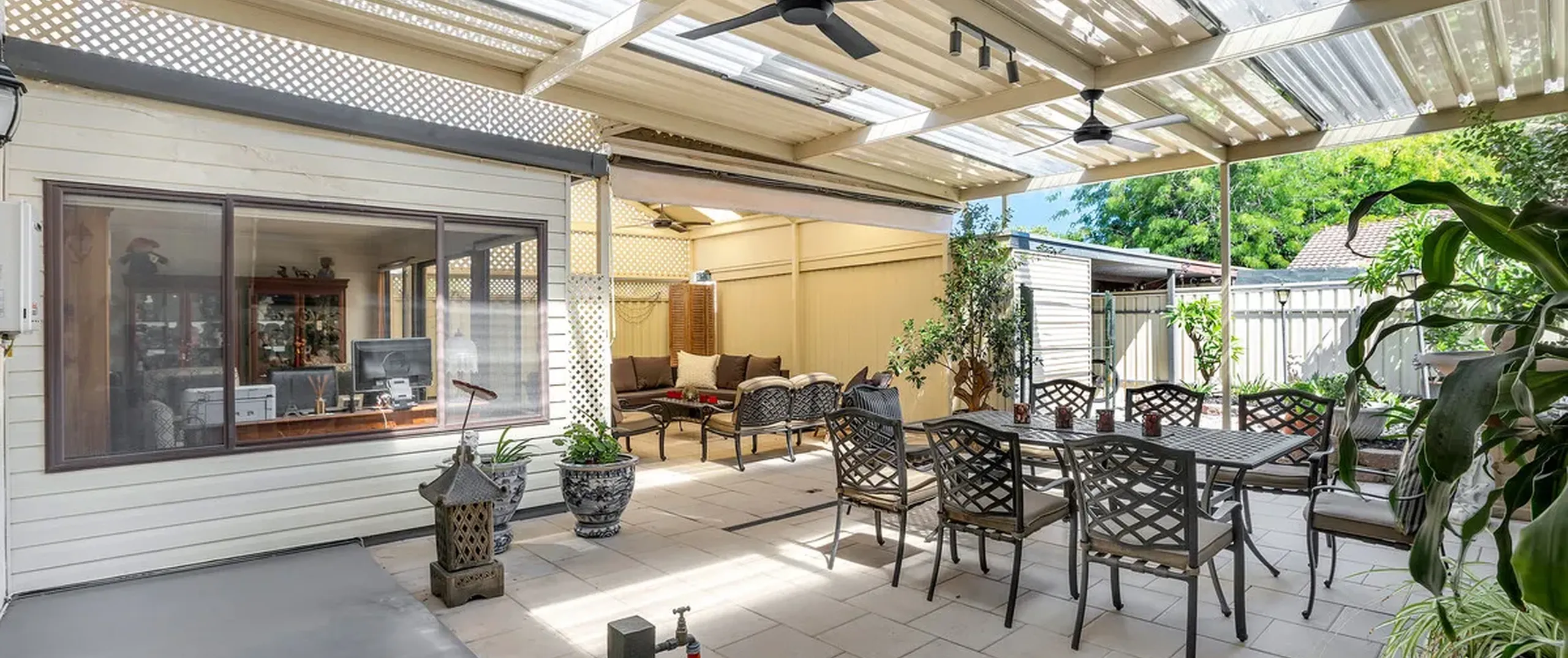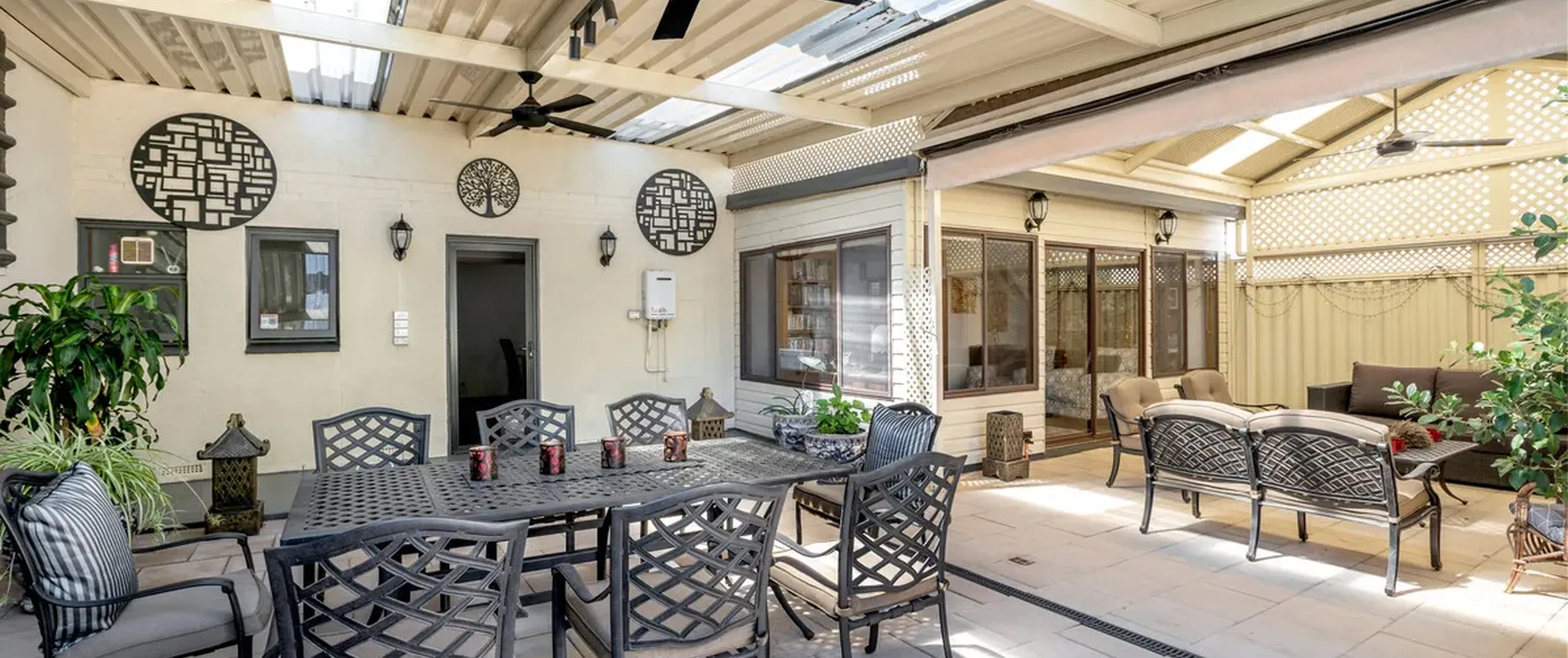- Impressive outdoor entertaining area with verandah extension, complete with outdoor ceiling fans
