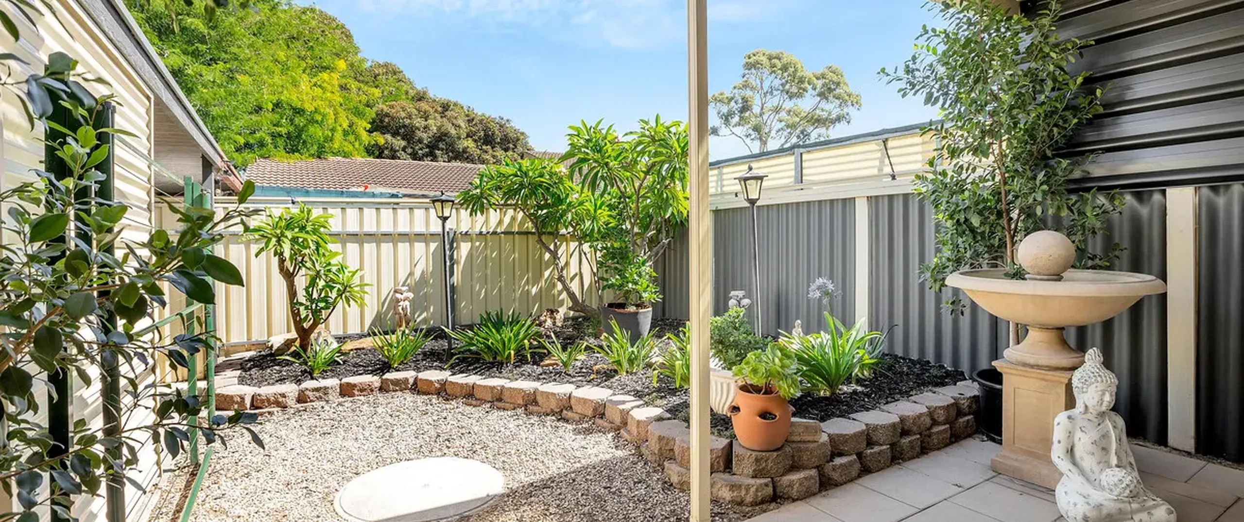 - Fully fenced, low maintenance yard with garden shed