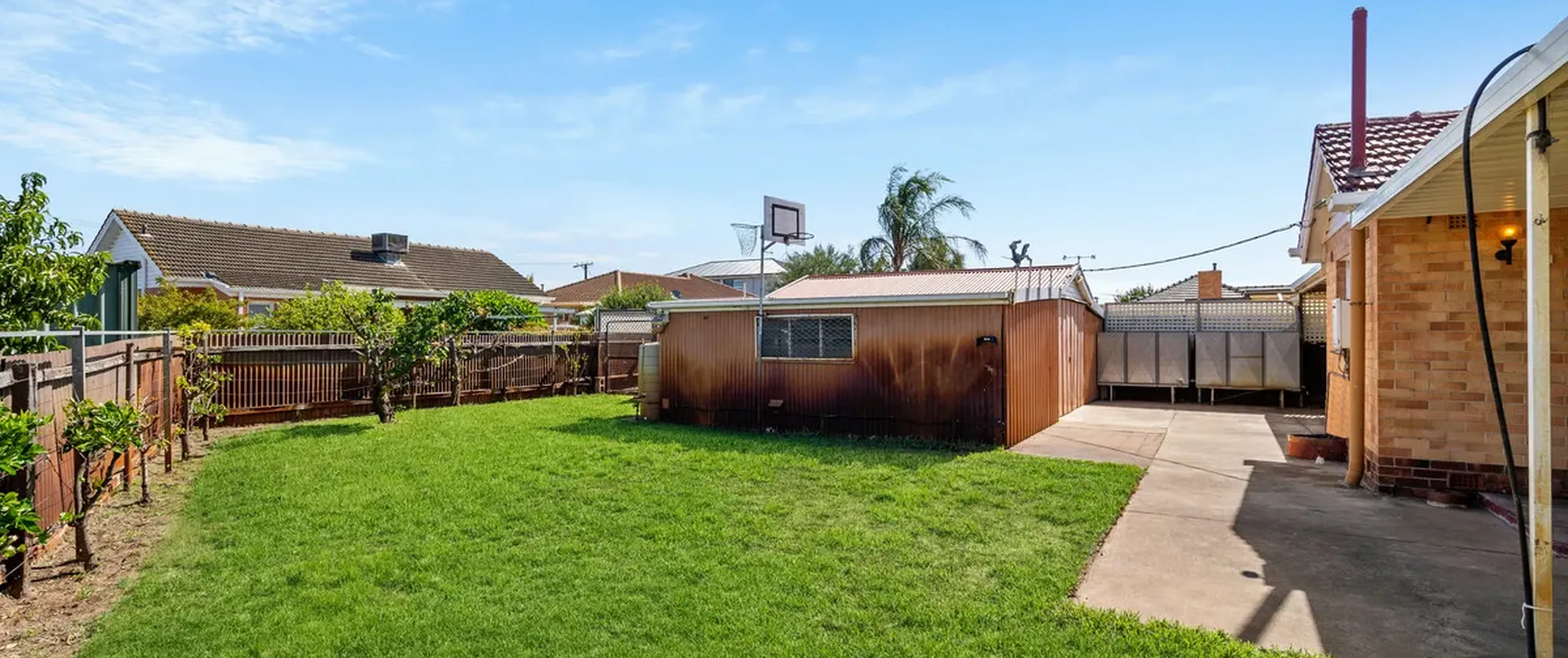 - Moving to the rear of the home, be greeted by a stately backyard which also offers an undercover verandah overlooking a mass of established fruit trees and lawn.