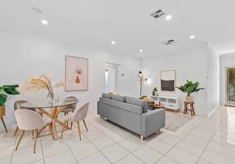 - Bright living/meals area adjacent to the kitchen, complete with sleek easy-care tiles throughout