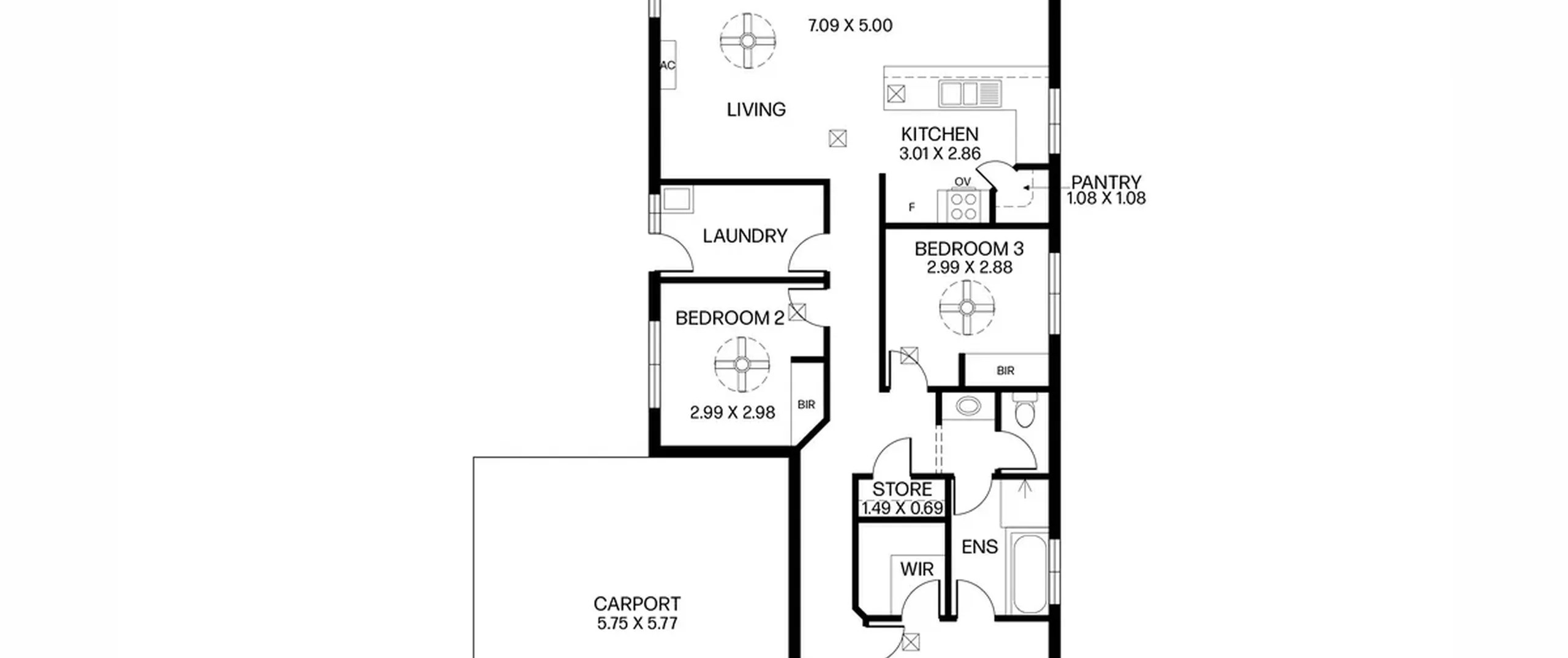 - Bedrooms 2 and 3, with built-in robe and ceiling fans