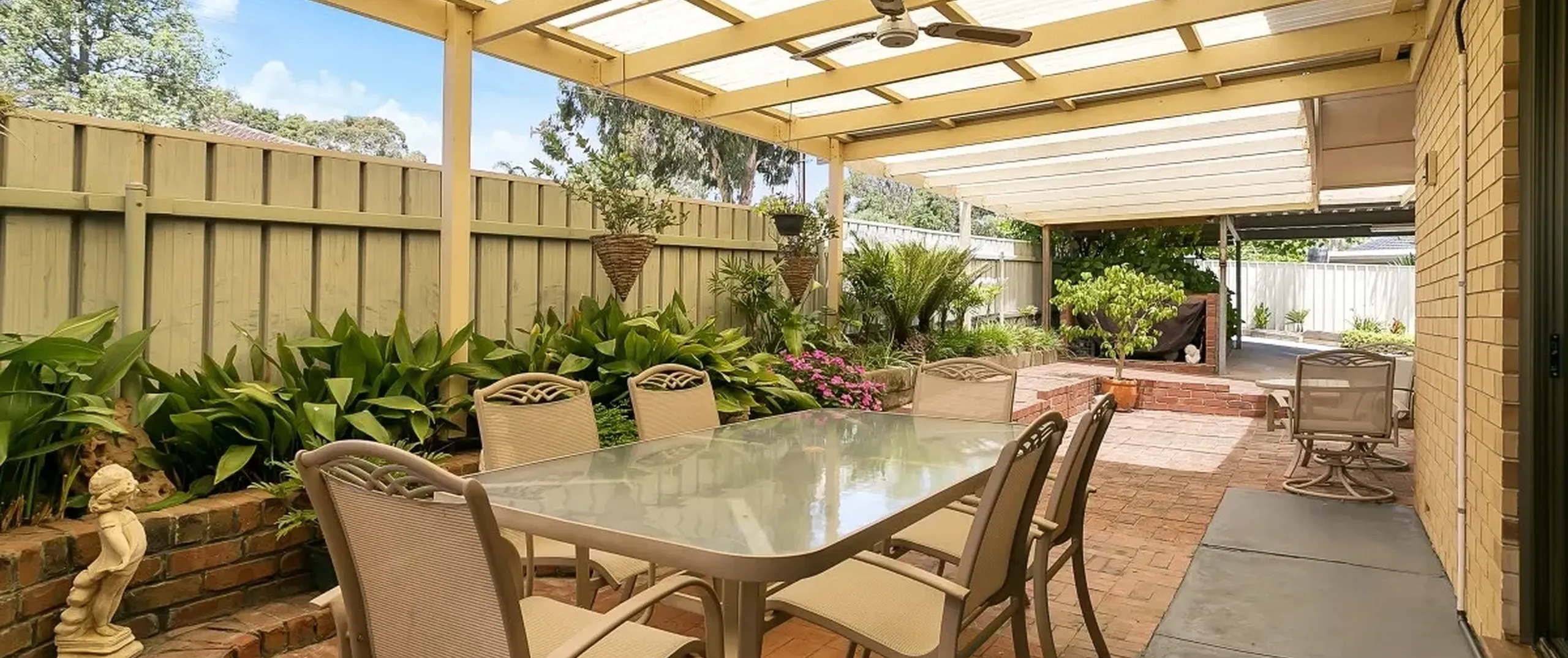 - Expansive undercover outdoor entertaining area with ceiling fan