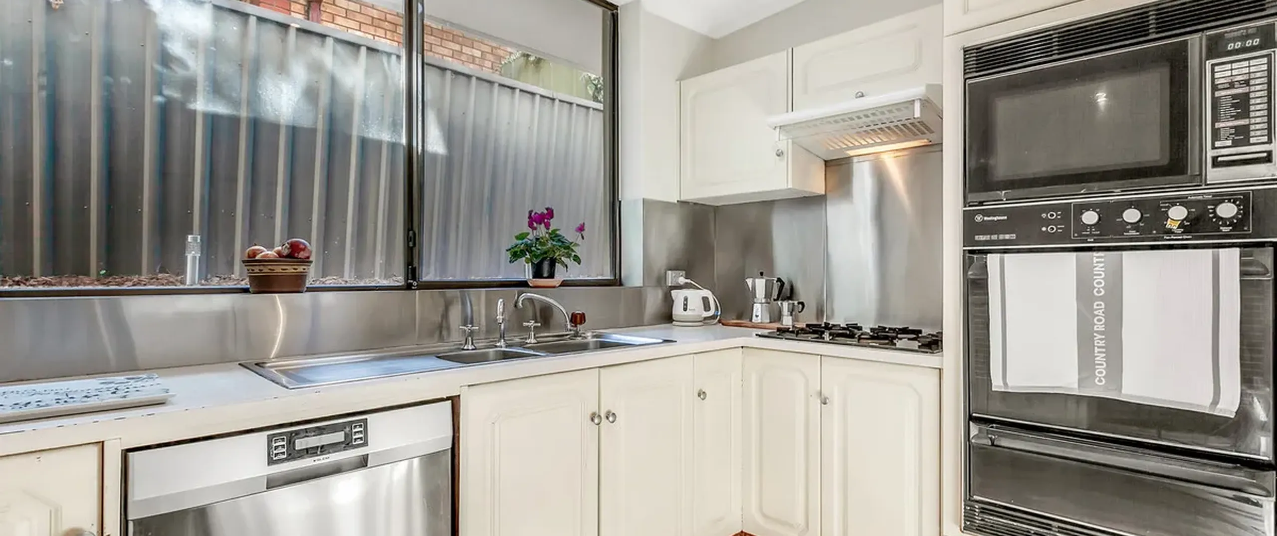 - Contemporary kitchen with dishwasher, gas cooktop, breakfast bar and ample cupboard space