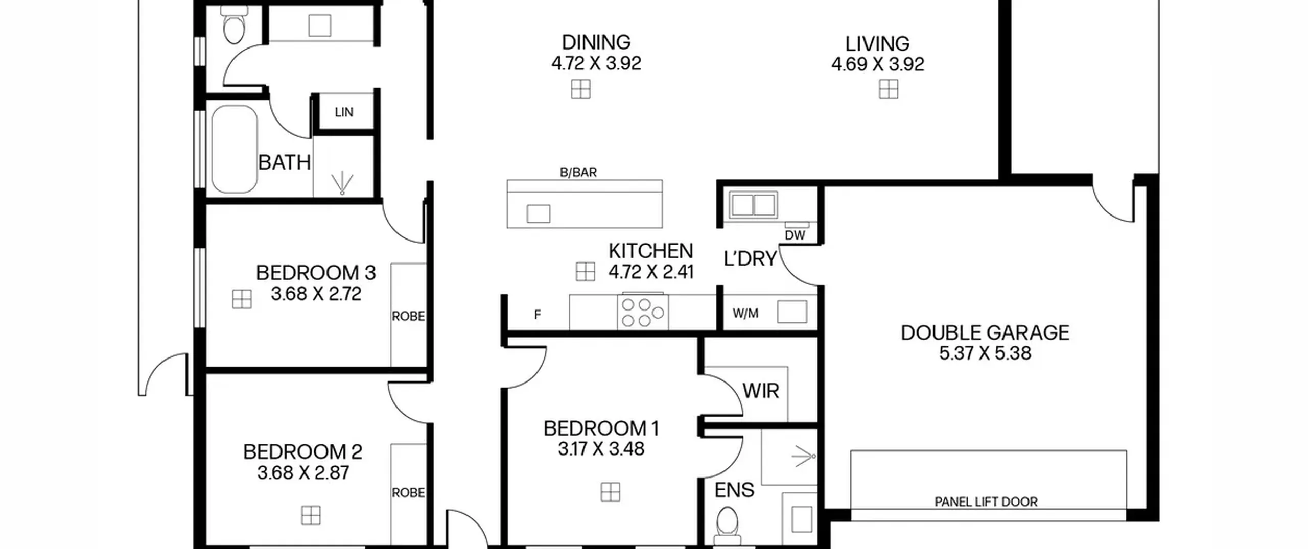 Light-filled and spacious, the open-plan living and dining area flows seamlessly to the outdoor alfresco through large glass sliding doors, creating the perfect setting for relaxed family living or year-round entertaining. This effortless indoor-outdoor connection enhances the sense of space and invites natural light throughout.