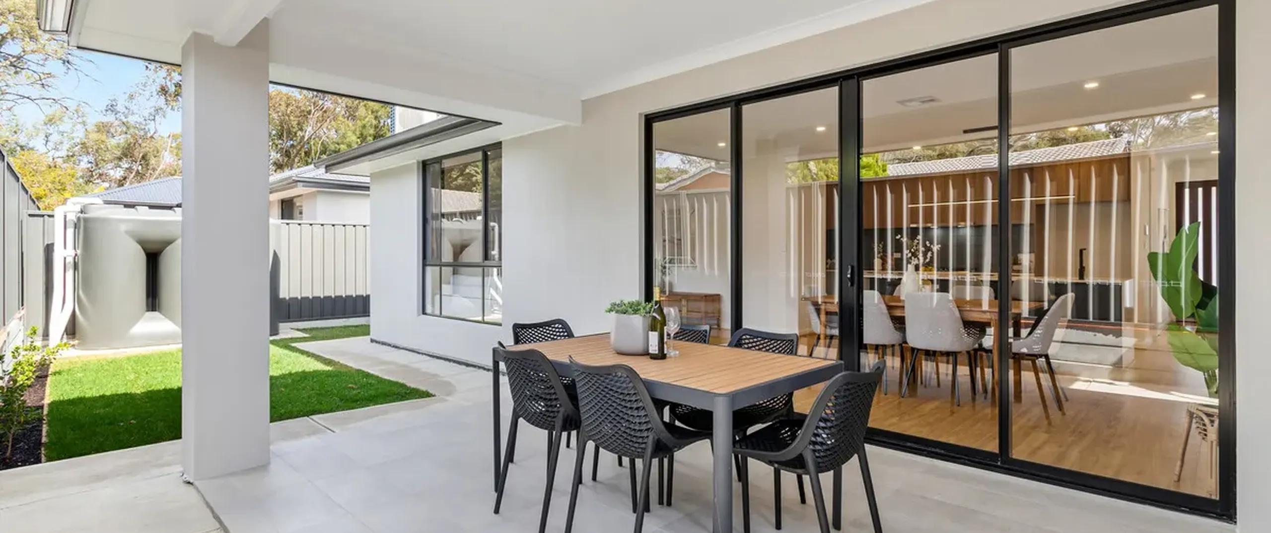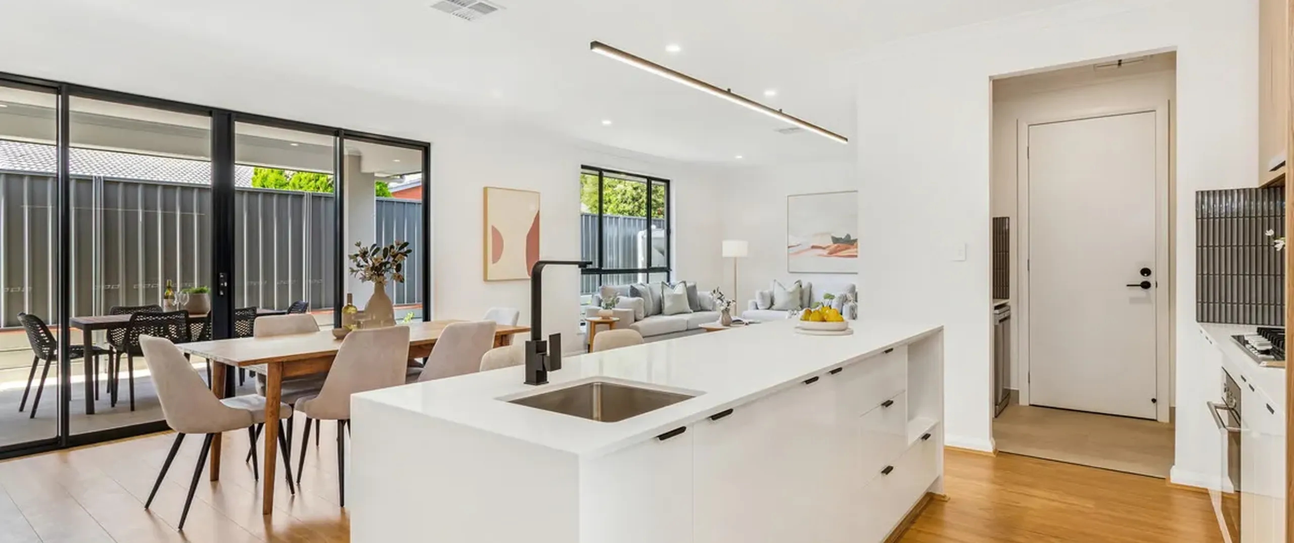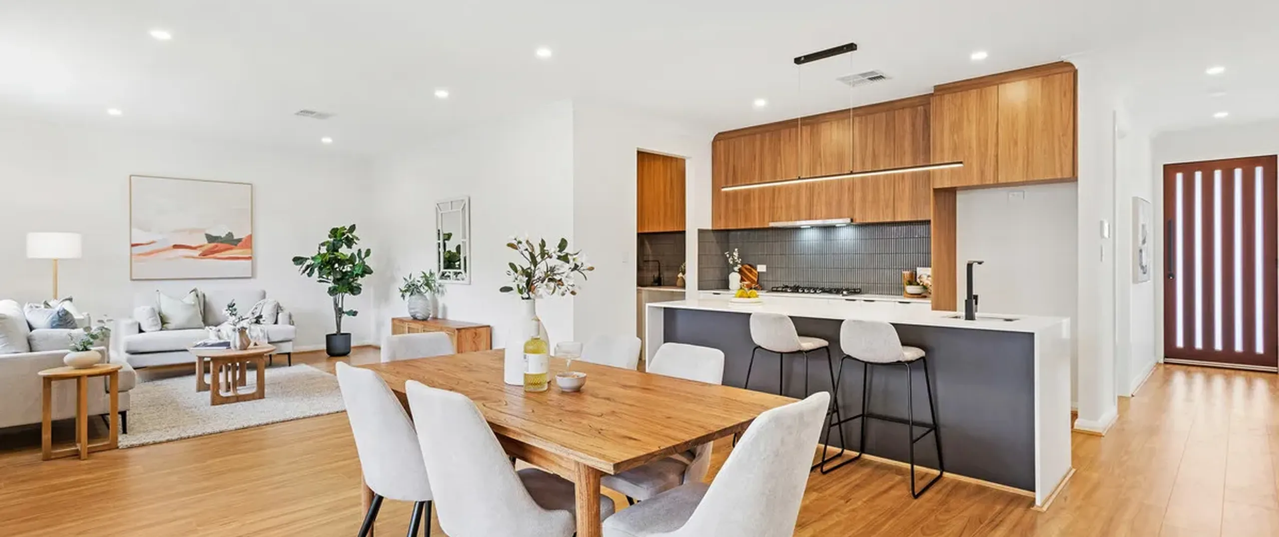 • Expansive open-plan living and dining area filled with natural light, seamlessly flowing to the outdoor alfresco through large glass sliding doors