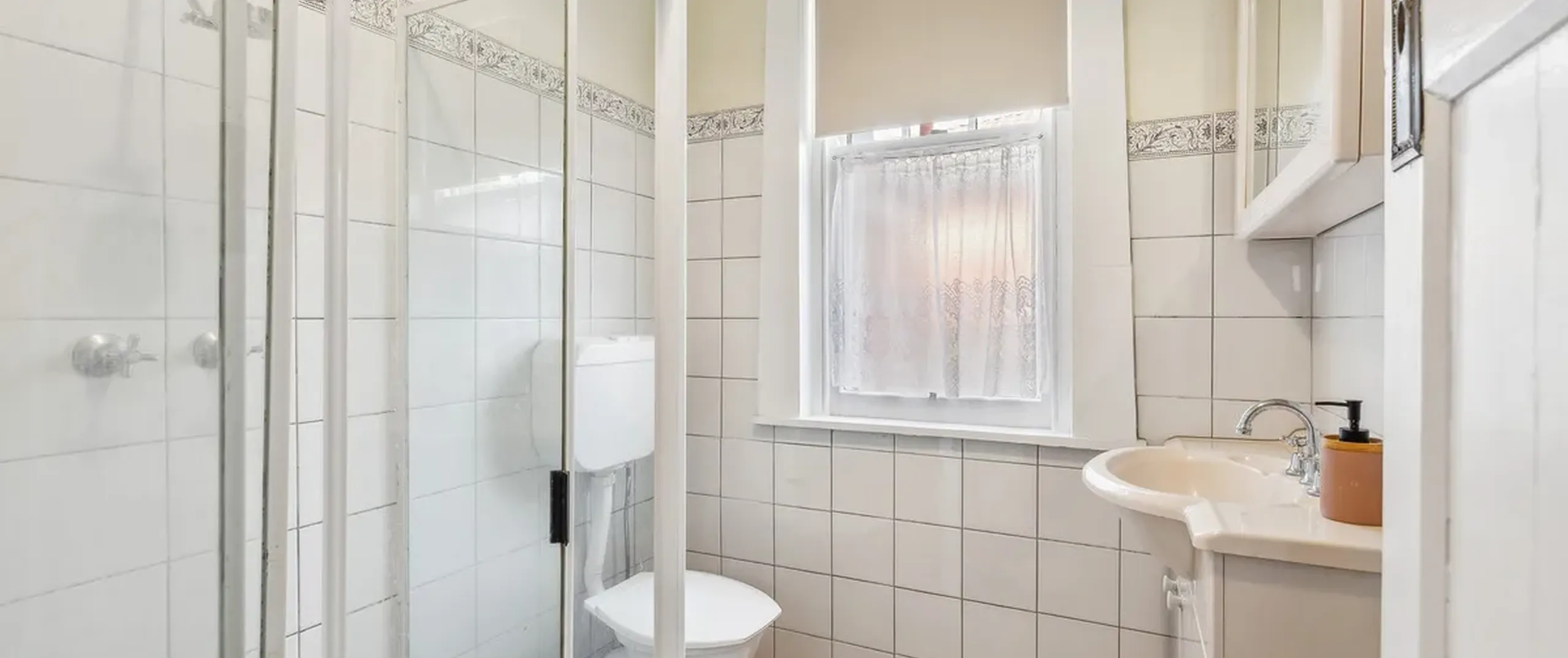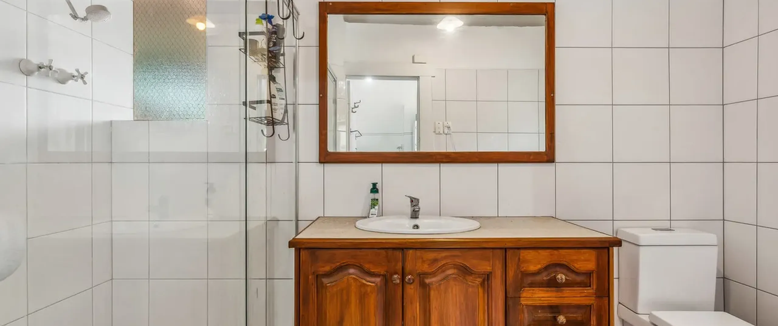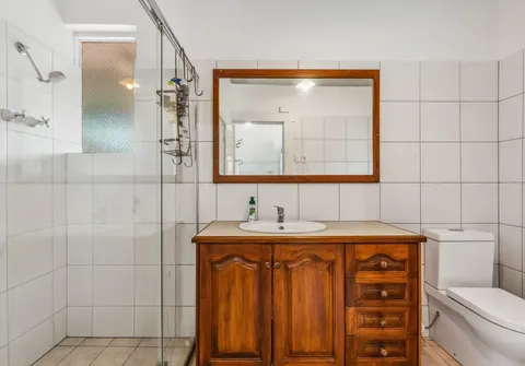 - Bathroom with toilet, shower and vanity