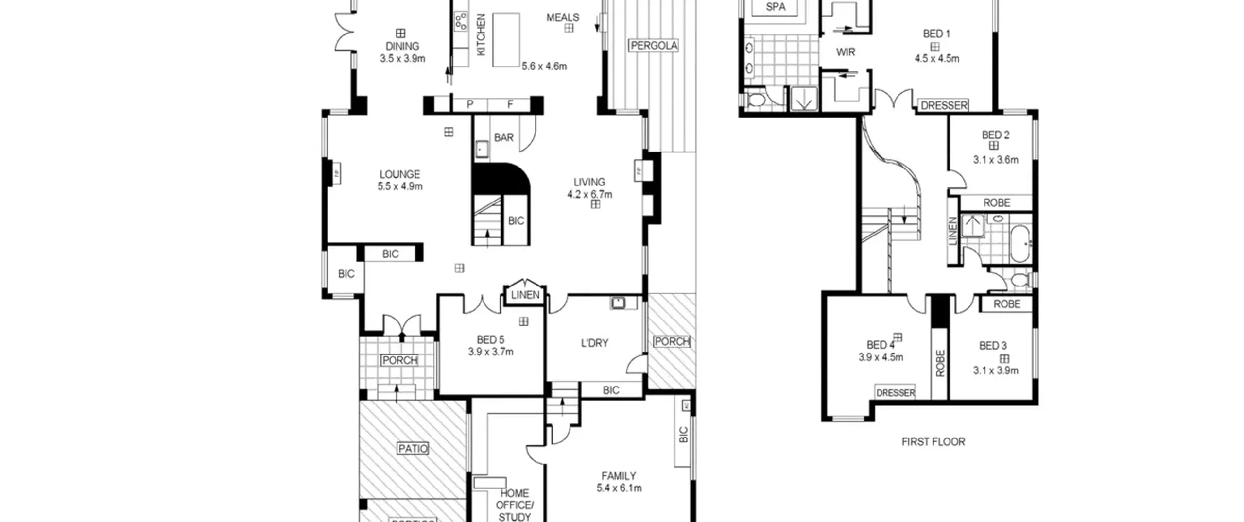 The sleeping quarters total 5 bedrooms and are serviced by 2 bathrooms and a powder room, 4 of the bedrooms offer built-in robes and the master bedroom features his and hers deluxe walk-in robes.