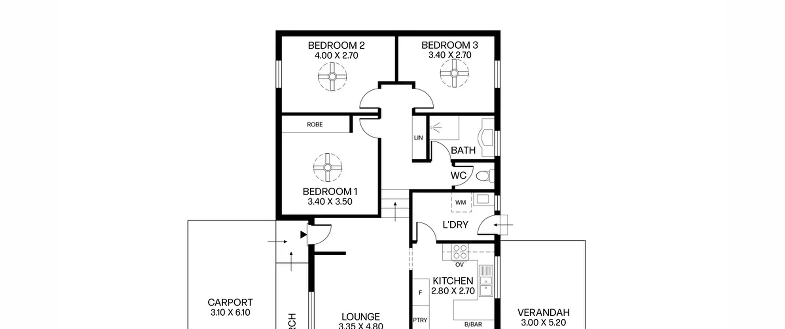 - Good sized bedrooms, all three rooms with ceiling fans and bedroom 1 with a built-in robe