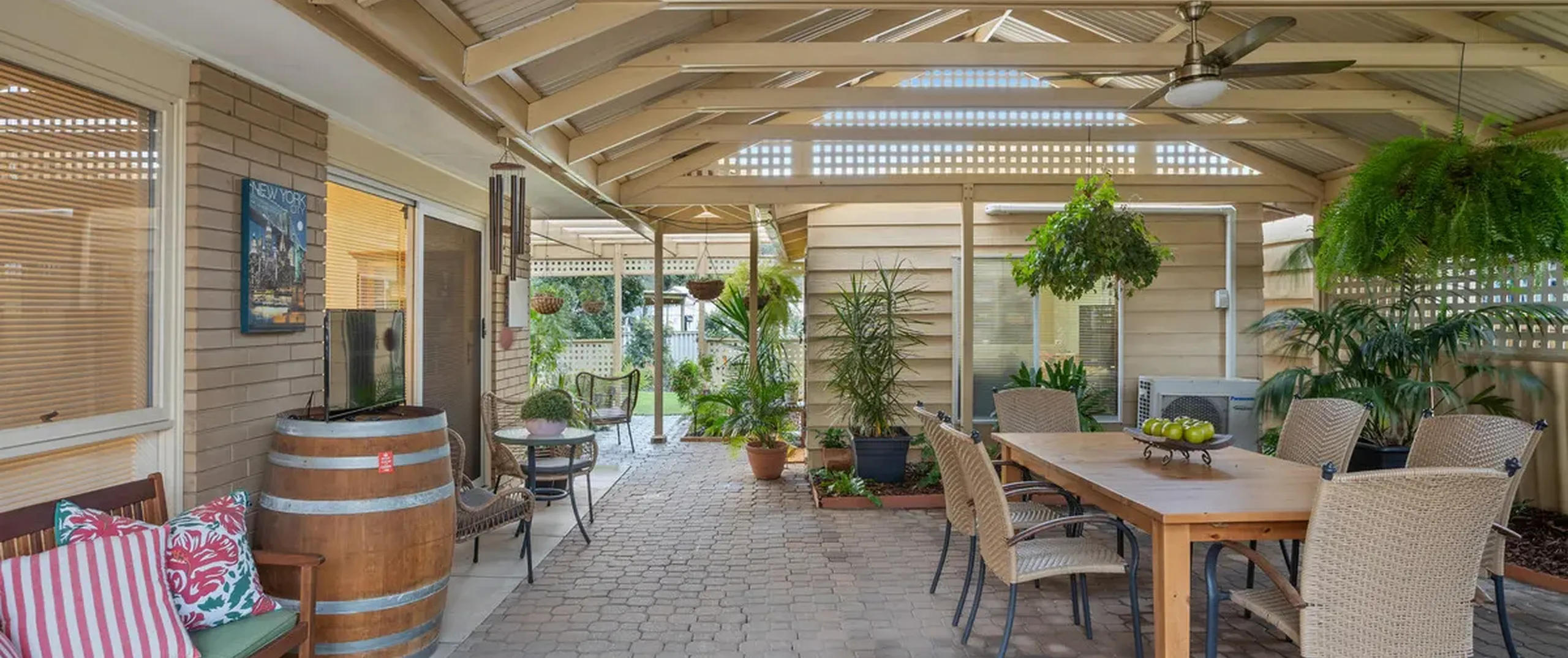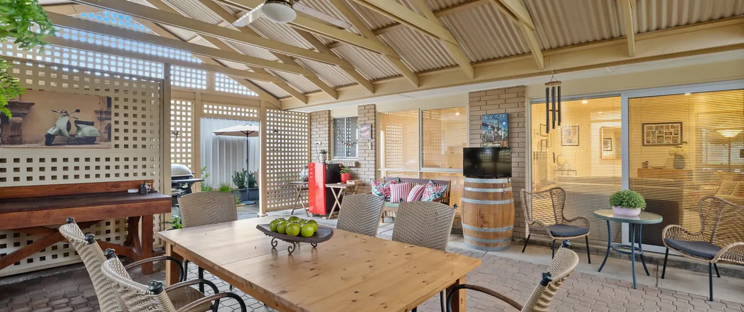 - Spacious and well-equipped entertaining area complete with ceiling fan