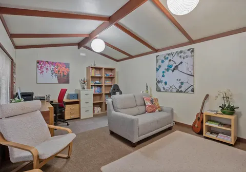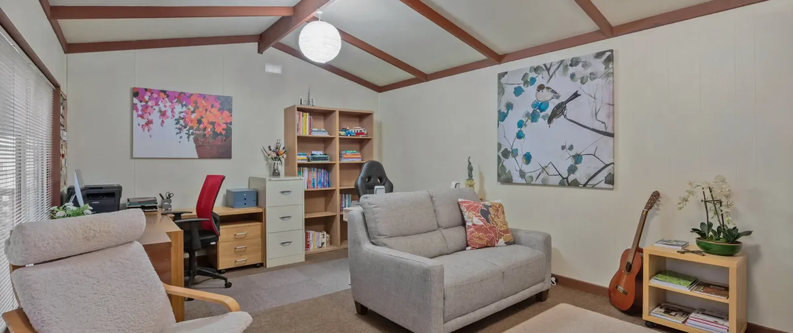 - Spacious external rumpus room with pitched ceilings and split system air-conditioner