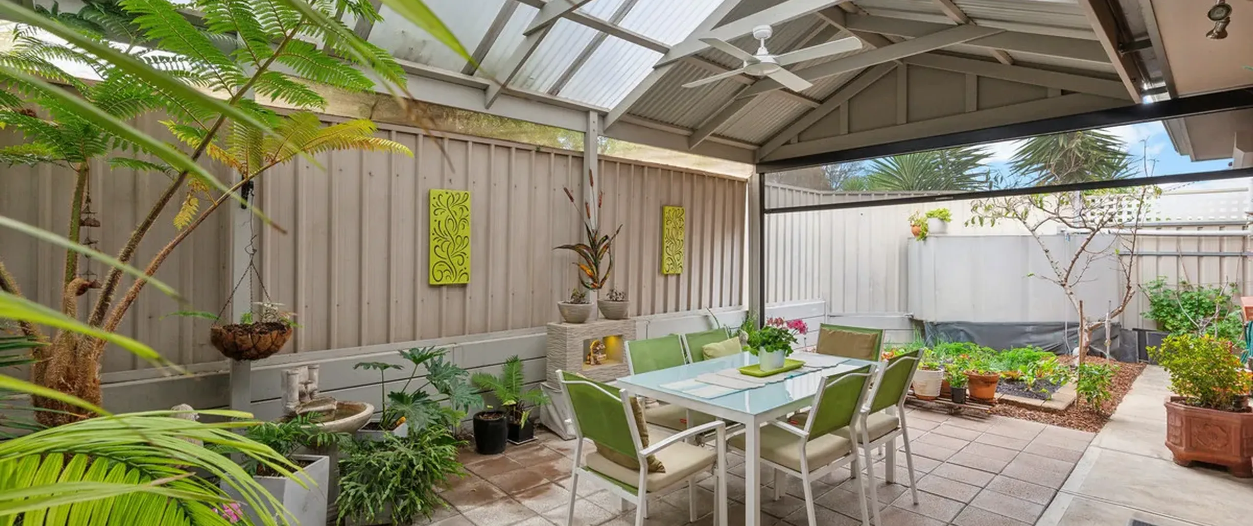 - Spacious verandah with pitched roof and outdoor track blinds, ideal for outdoor entertaining