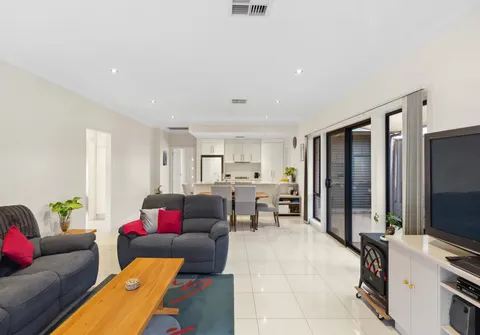 Set on an easy-to-maintain Torrens-titled 289sqm (approximate) block, this property features three spacious bedrooms and a generous open-plan kitchen, living, and dining area. The living space flows effortlessly through sliding doors to a pitched roof verandah with a ceiling fan, surrounded by easy-care grounds, creating an idyllic outdoor oasis. A single garage under the main roof with direct drive-through rear access for additional storage completes the offering.
