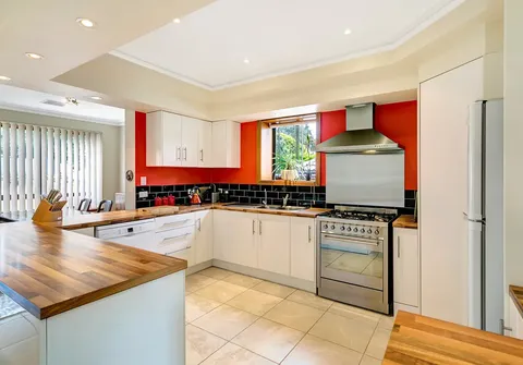 - Modern and stylish kitchen with stainless steel appliances, freestanding gas cooker, dishwasher, walk-in pantry and ample bench and cupboard space