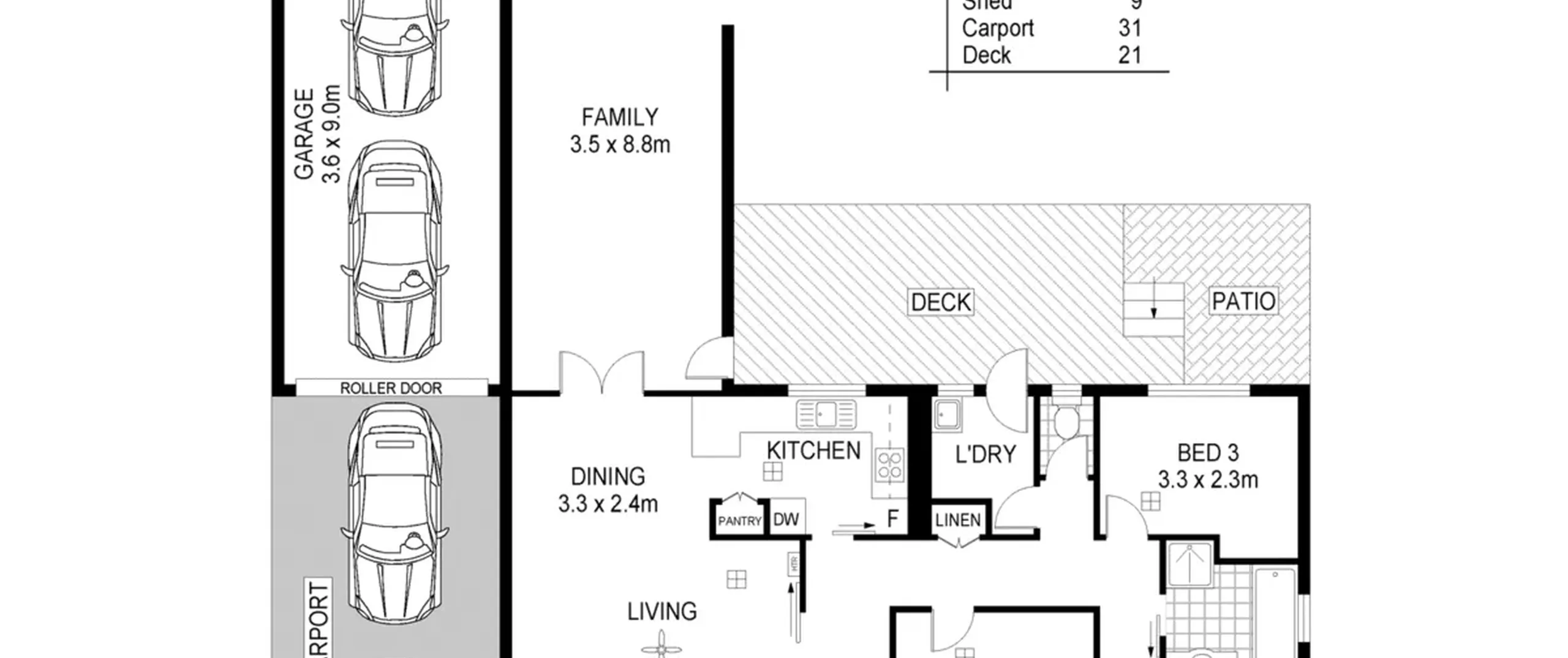 - Double length garage with roller door and double length carport