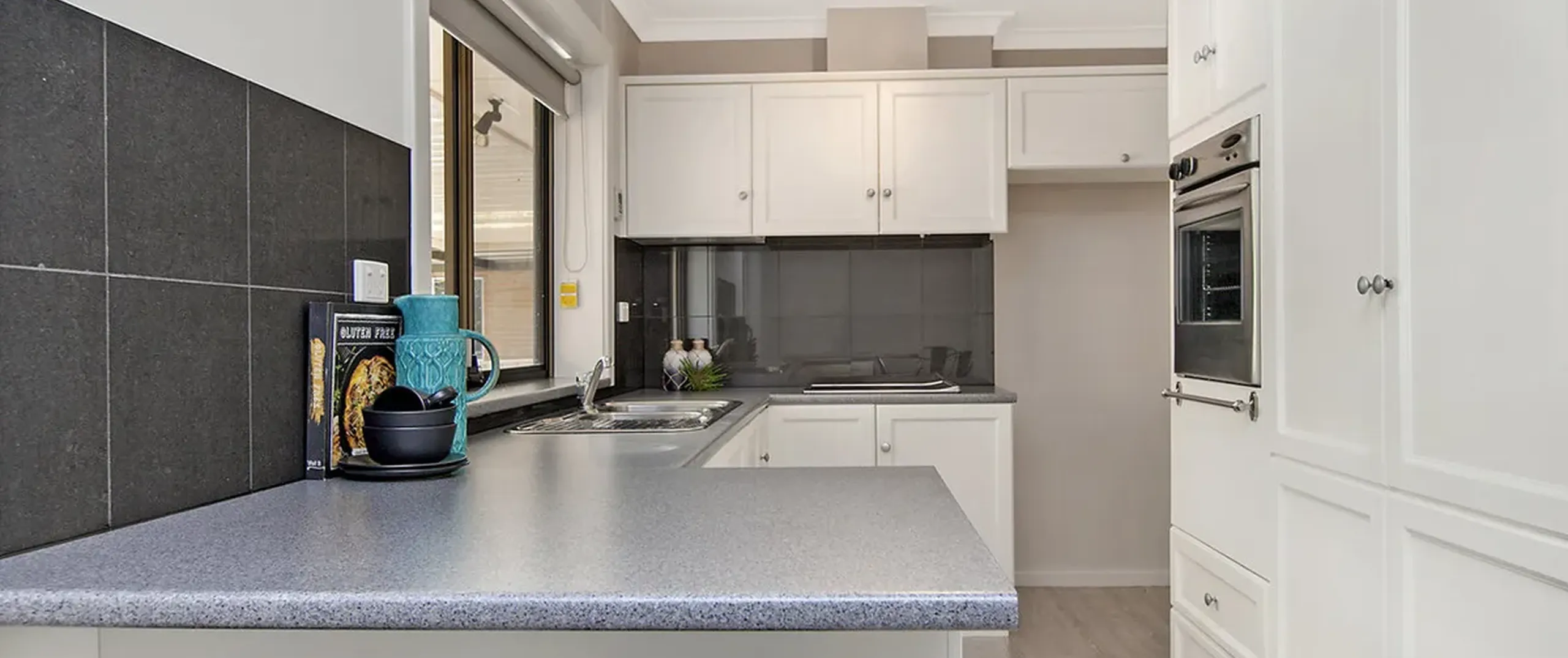 - Modern kitchen with ample bench and cupboard space