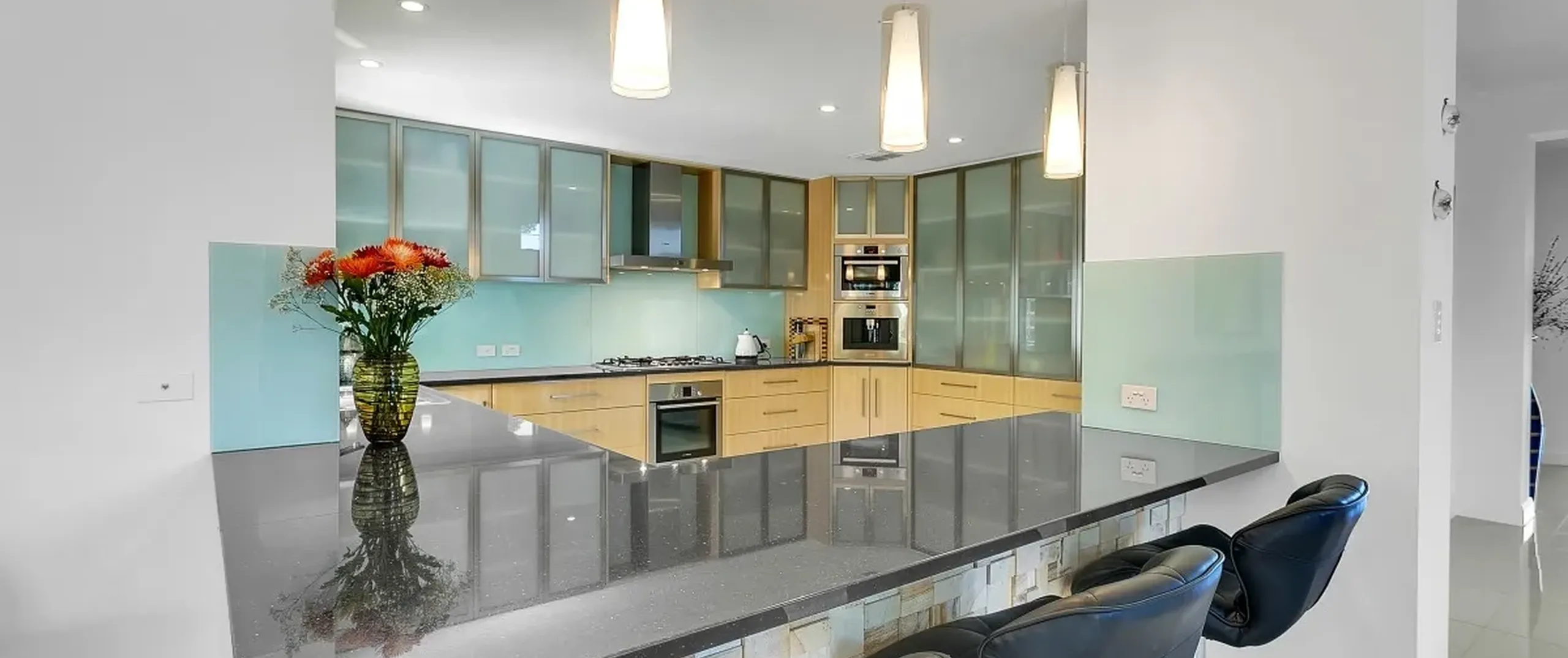- Stunning kitchen with Delonghi built-in coffee machine, Bosch steam oven, 900mm gas cooktop, dishwasher, ample cupboard space and stone benchtops