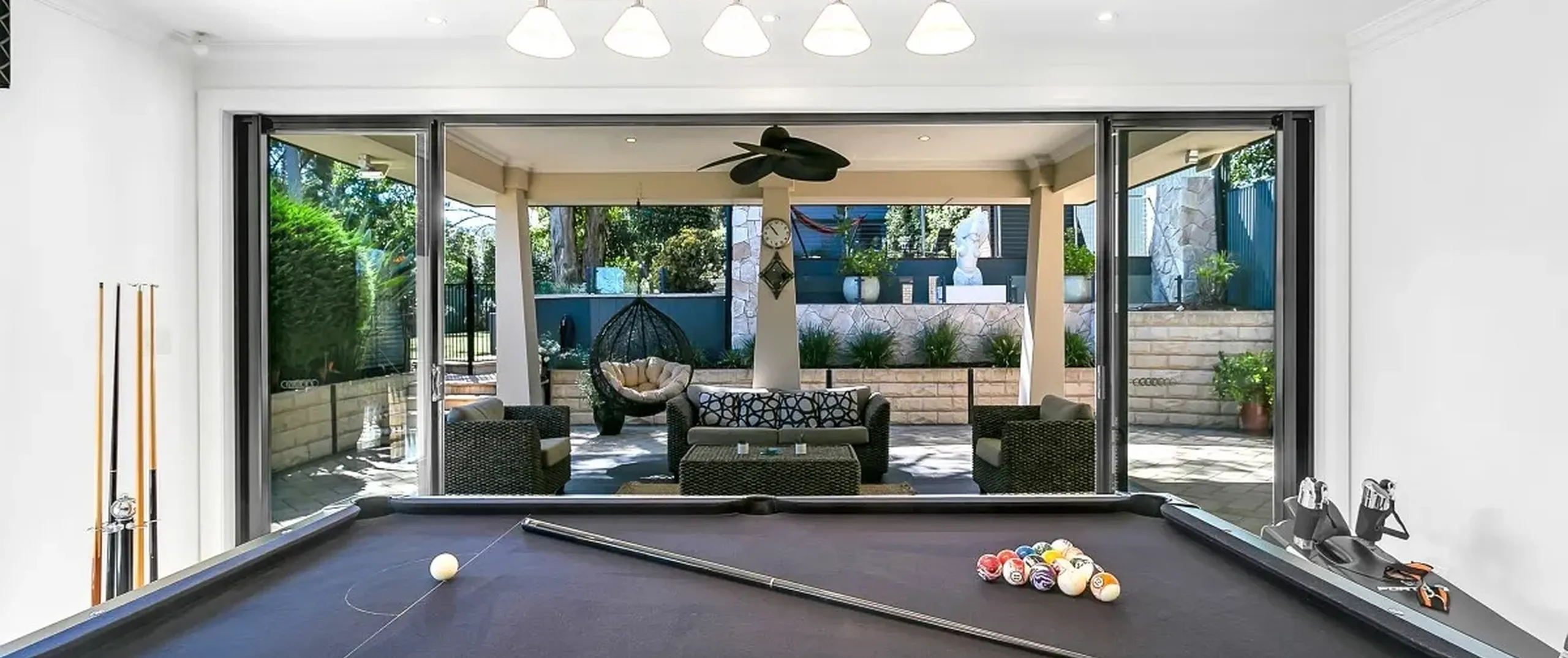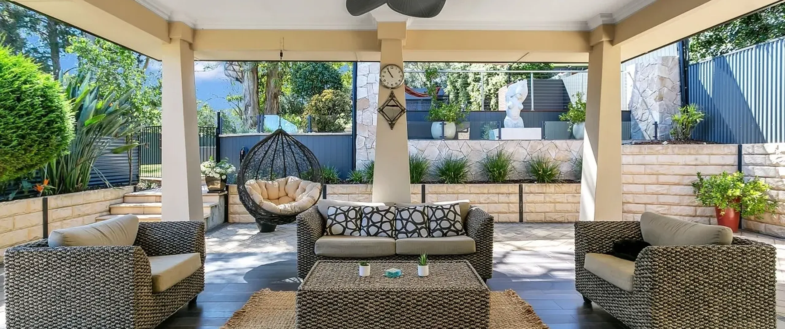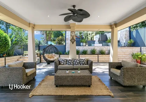 - Expansive alfresco with ceiling fan and water feature, ideal for outdoor entertaining