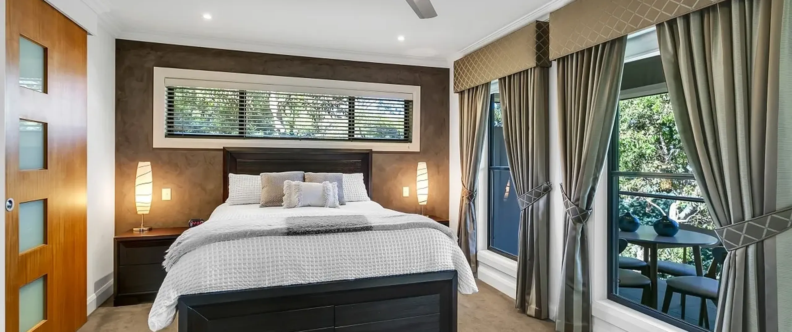 - Master suite with walk-in robe, ensuite, ceiling fan and private balcony with views to the coast