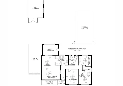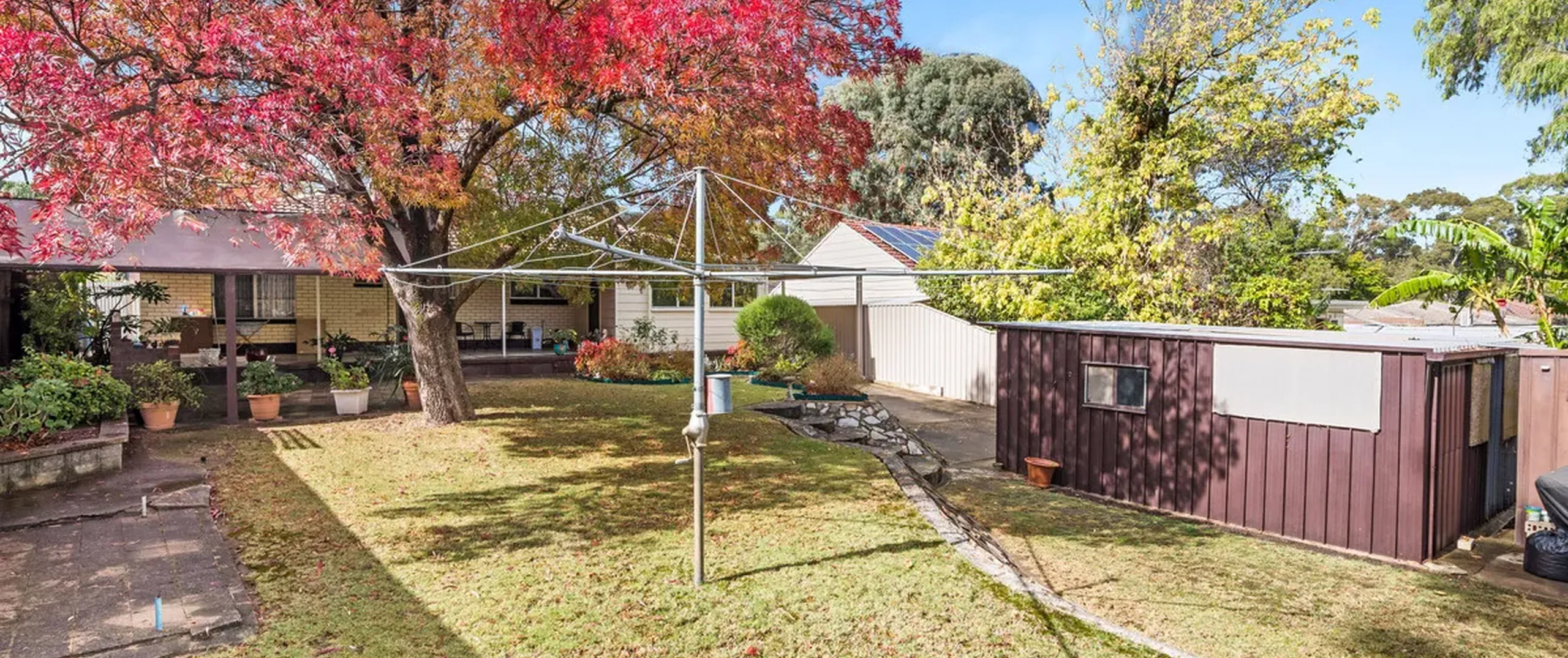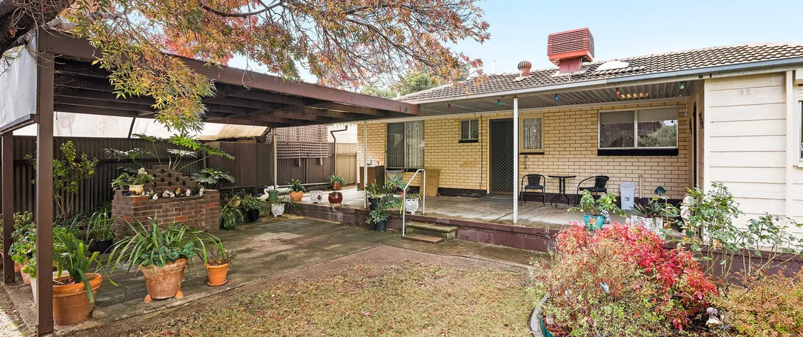 - Single carport with roller door and drive through access