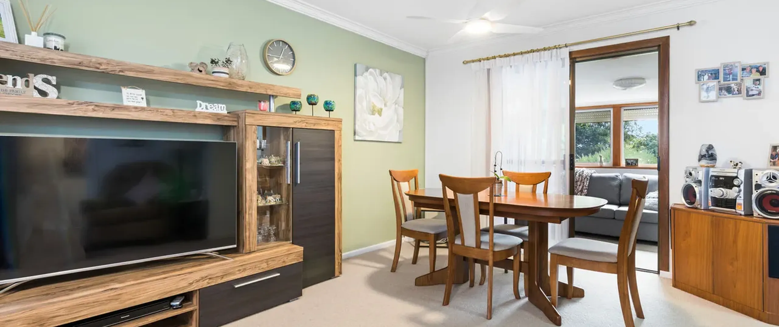 - Spacious open – plan lounge/family and dining room with two ceiling fans for year round comfort