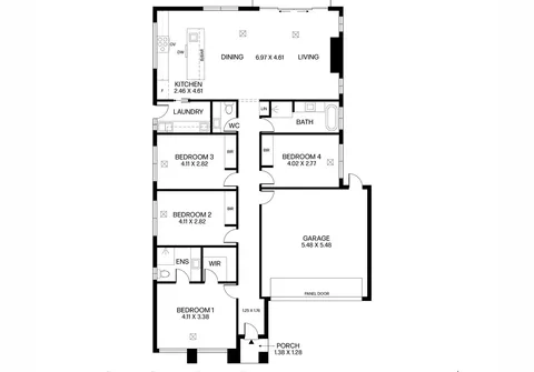 - Double garage with laundry facilities, panel lift door and internal/ external pedestrian access