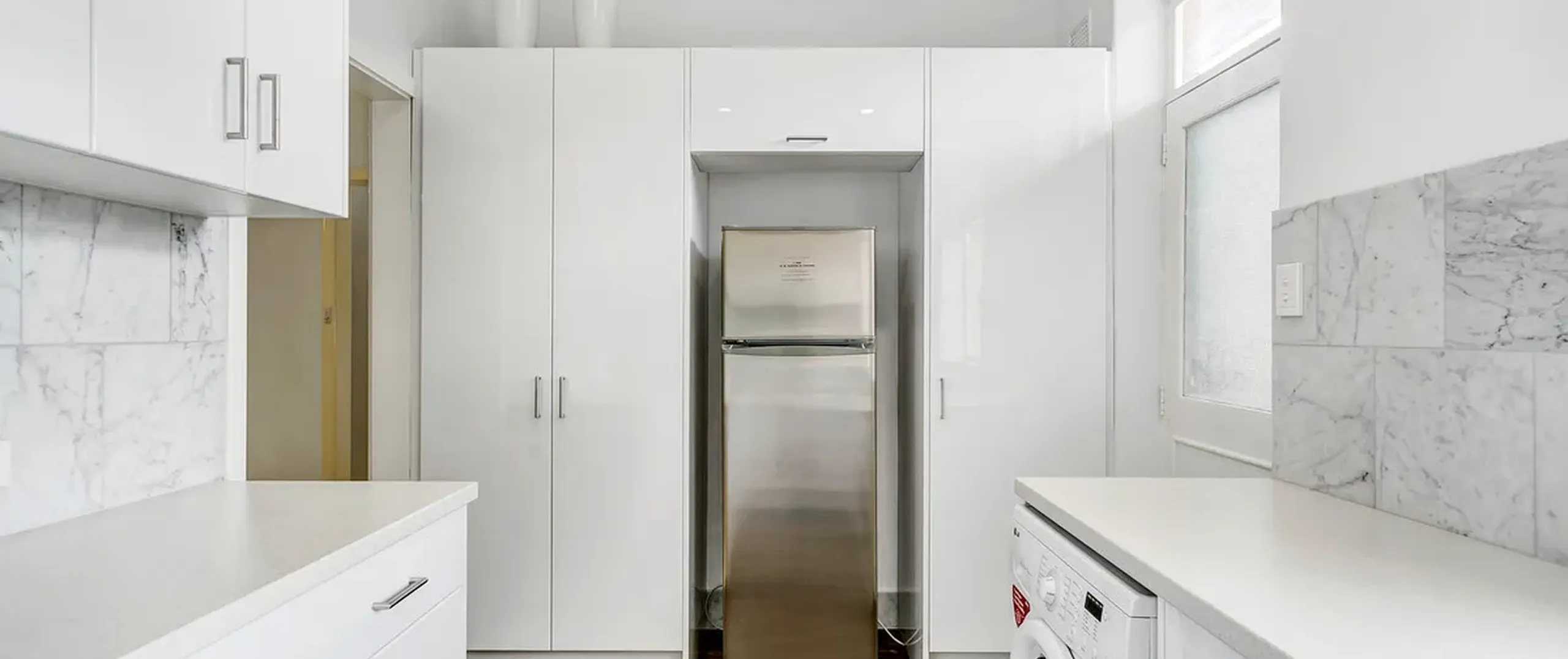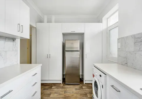 - Stunning renovated kitchen with white two pack cabinetry, plenty of storage, gas cooktop, Blanco appliances and 3 cupboard pantry