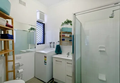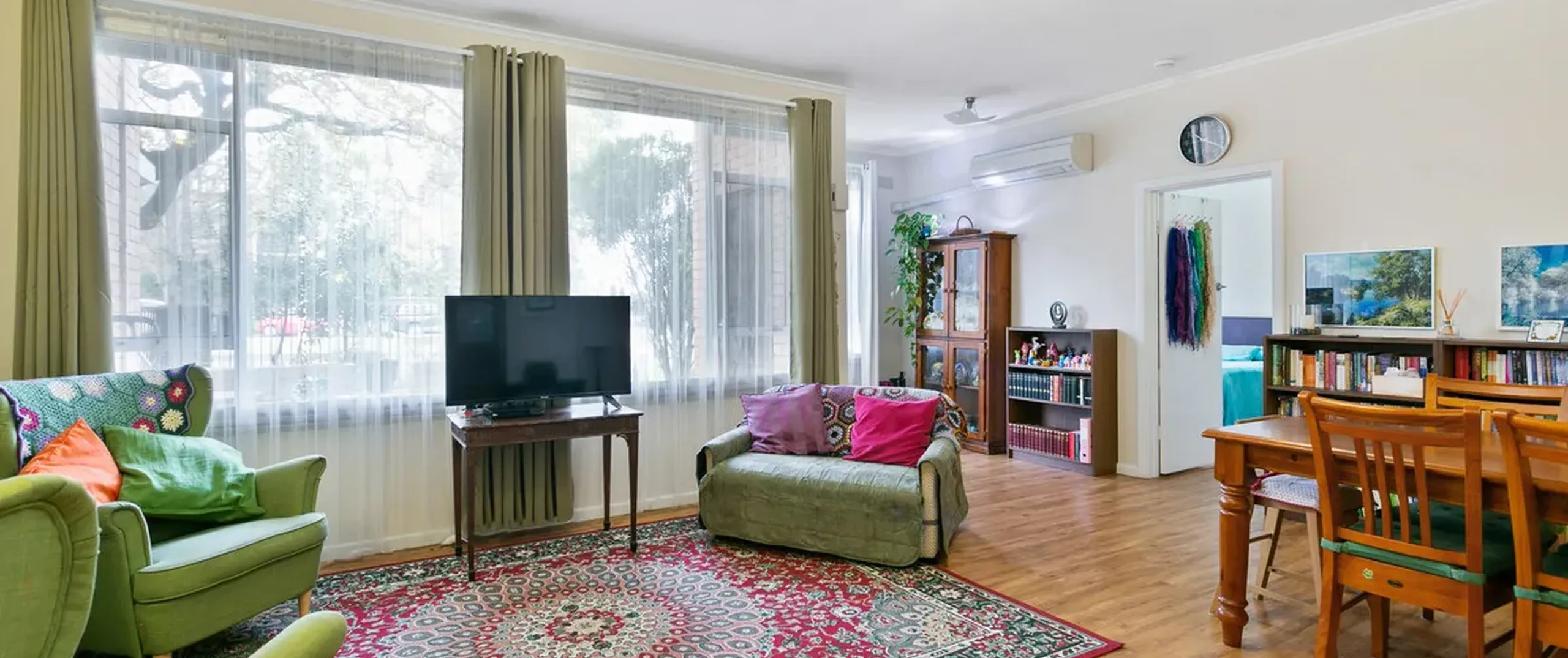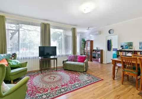 - Light filled and open plan lounge and dining area with reverse cycle split system air conditioner
