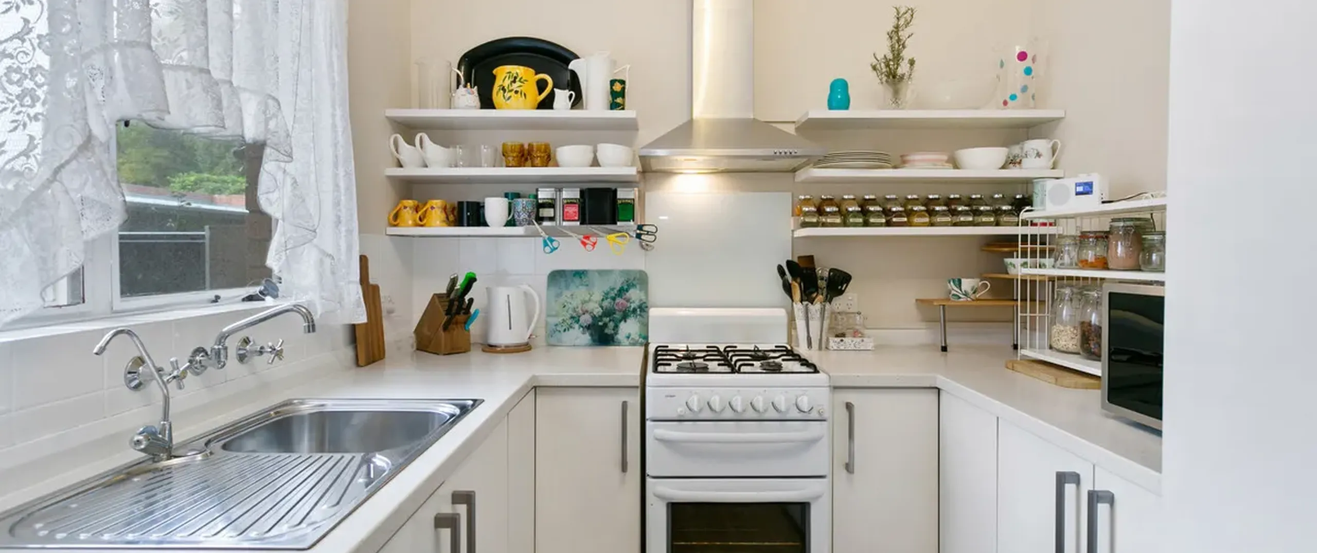 - Modern kitchen with plenty of storage space, gas cooktop, Blanco appliances and pantry