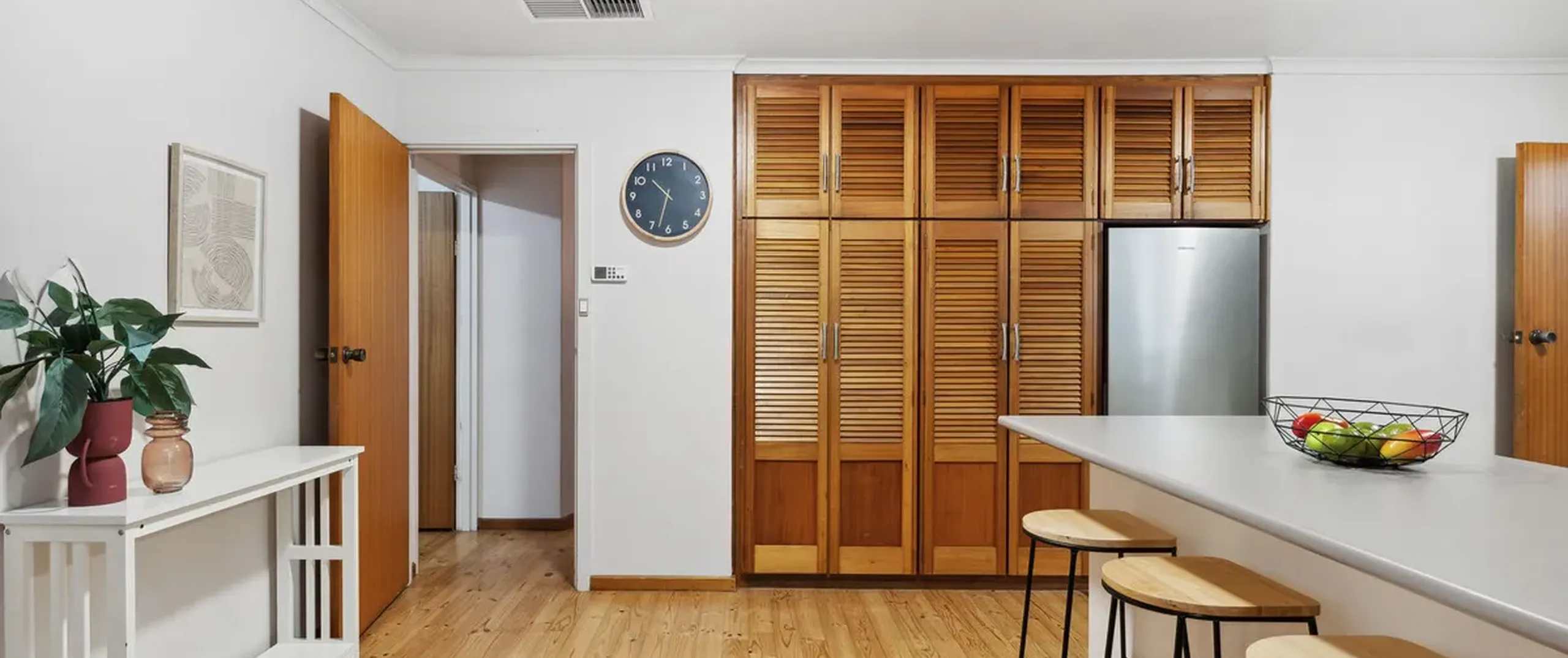 - Formal lounge/dining room to welcome you home with a gas wall furnace heater and beautiful pinewood floorboards underfoot