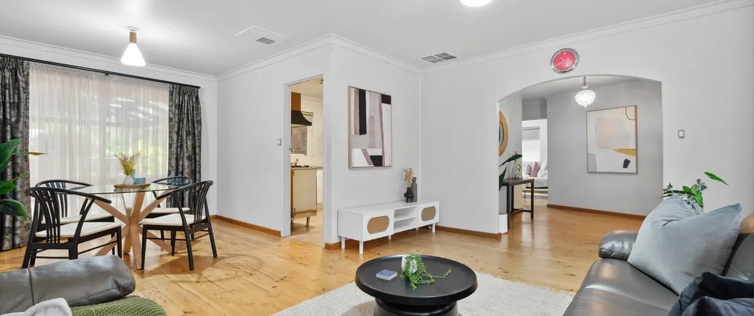 This delightful property boasts meticulously preserved original features, including the exquisite pine wood floors that exude timeless charm. Taking centre stage is the formal lounge/dining room, seamlessly transitioning into the spacious, modernised kitchen. This harmonious flow creates a warm and inviting ambiance that is perfect for both relaxation and entertainment. Beyond the kitchen, you'll find a bright and airy meals and family room providing a relaxing space to unwind and enjoy quality family time.
