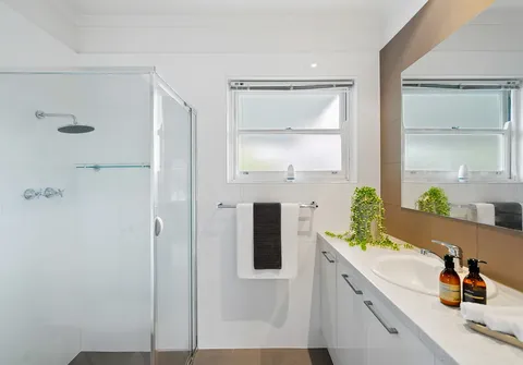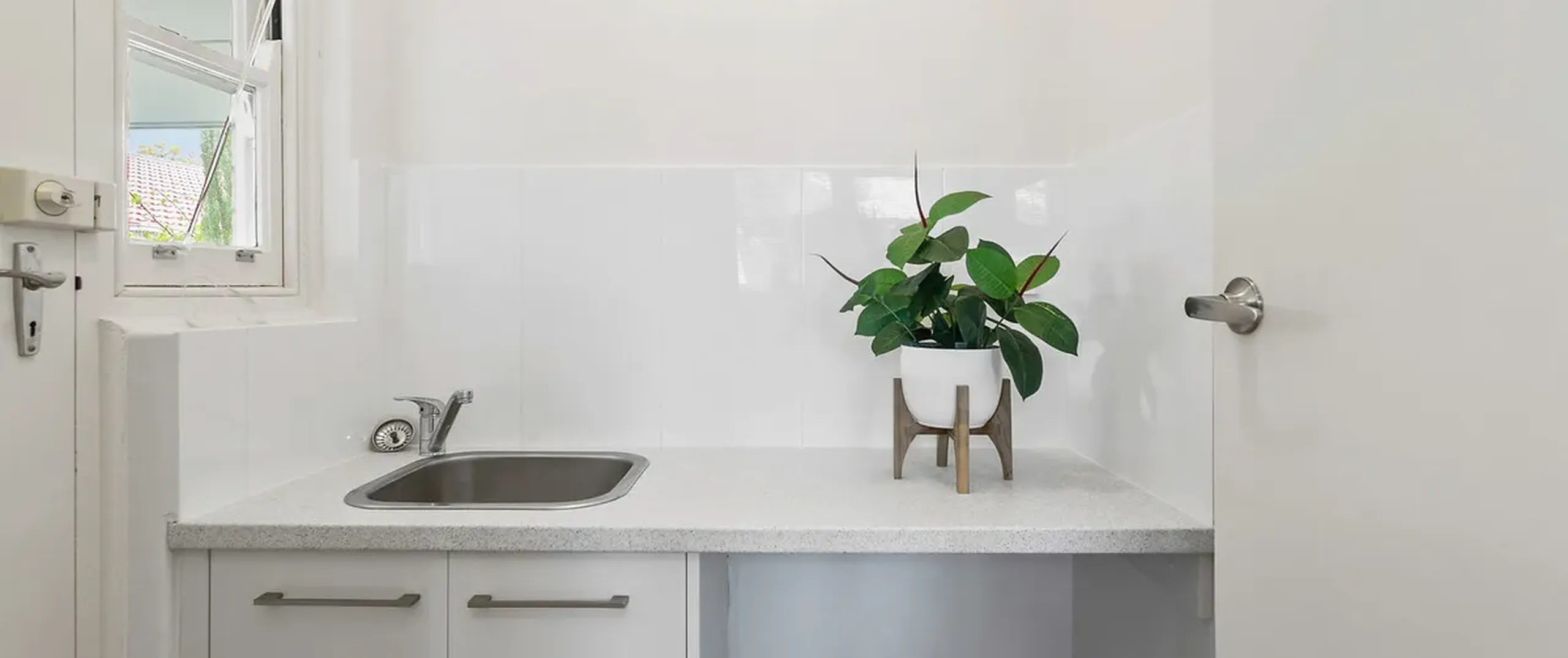 - Large porcelain tiles used in kitchen, bathroom and laundry