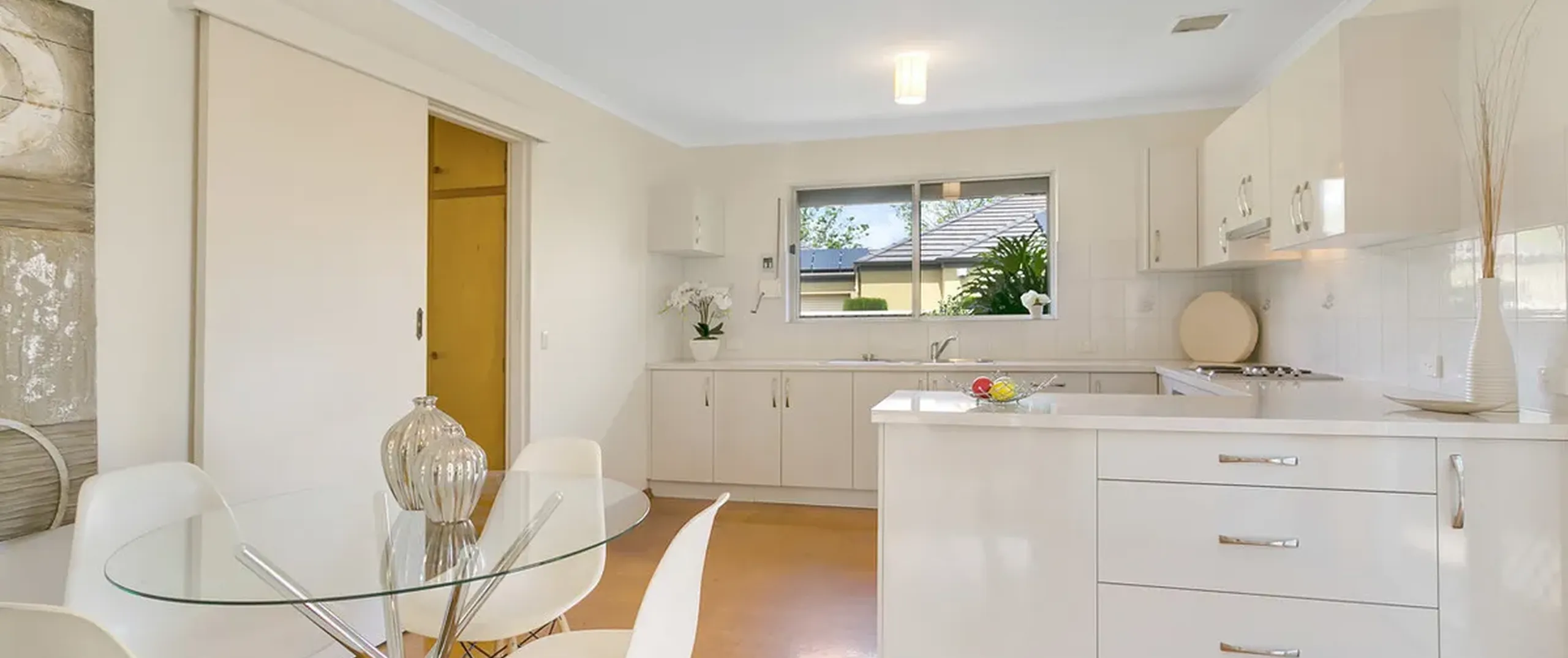 - Modern, stylish kitchen with stainless steel appliances, ample bench and cupboard space and adjacent dining area