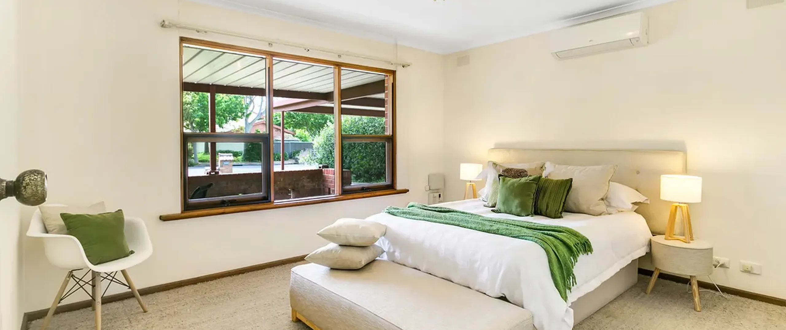 - Large master bedroom with split-system air conditioner