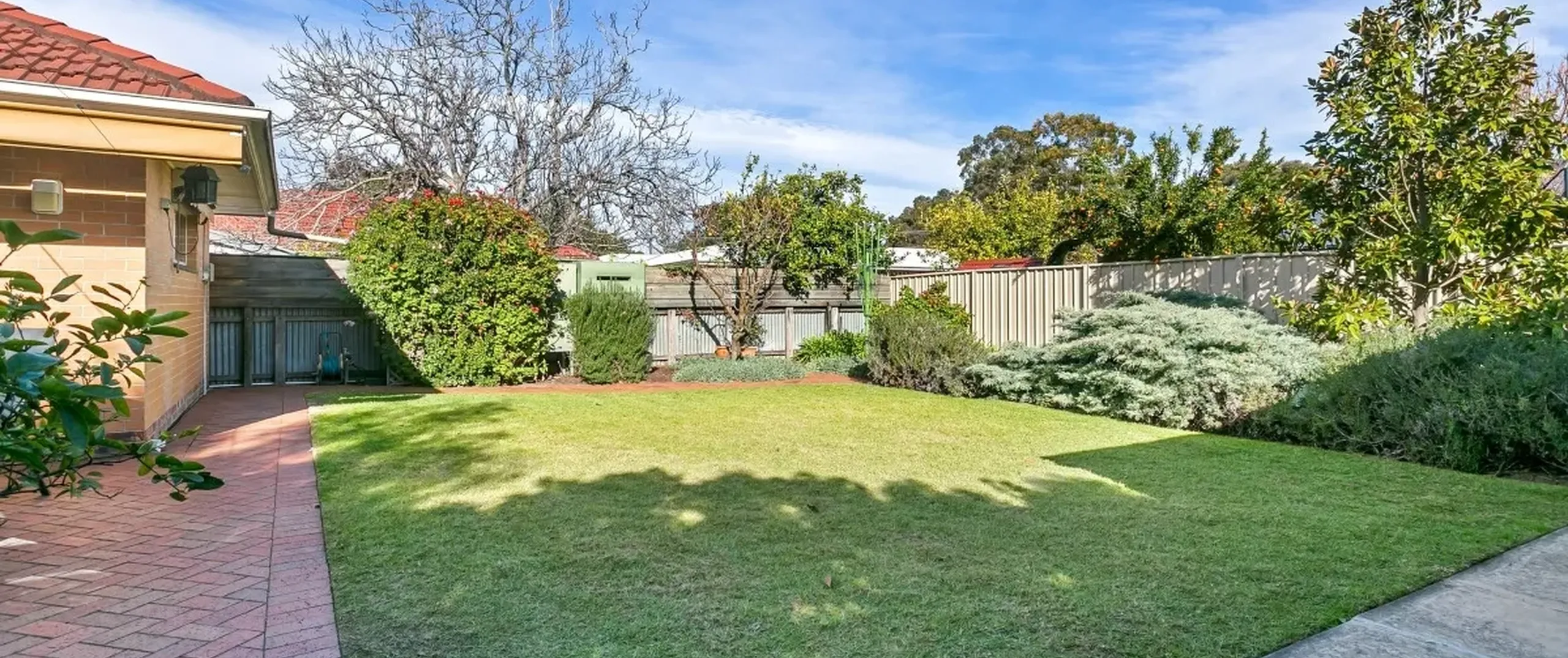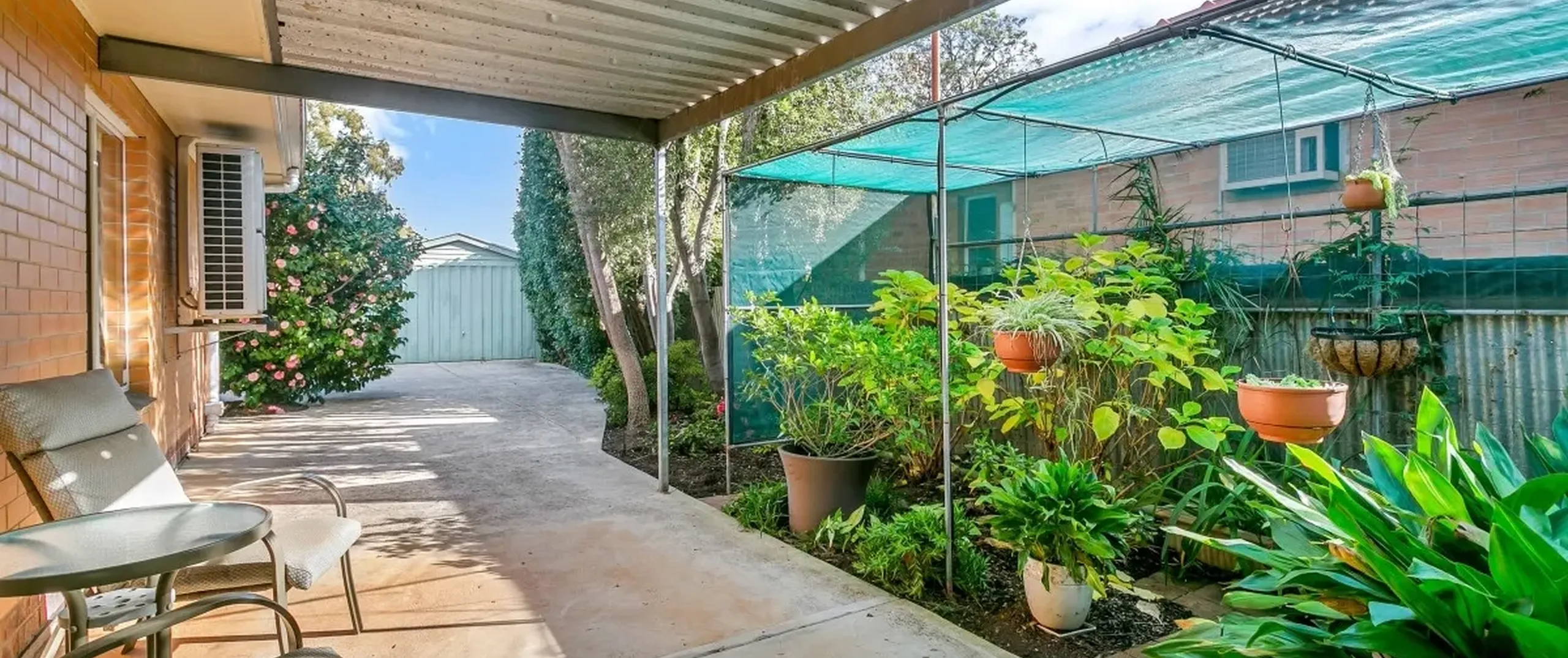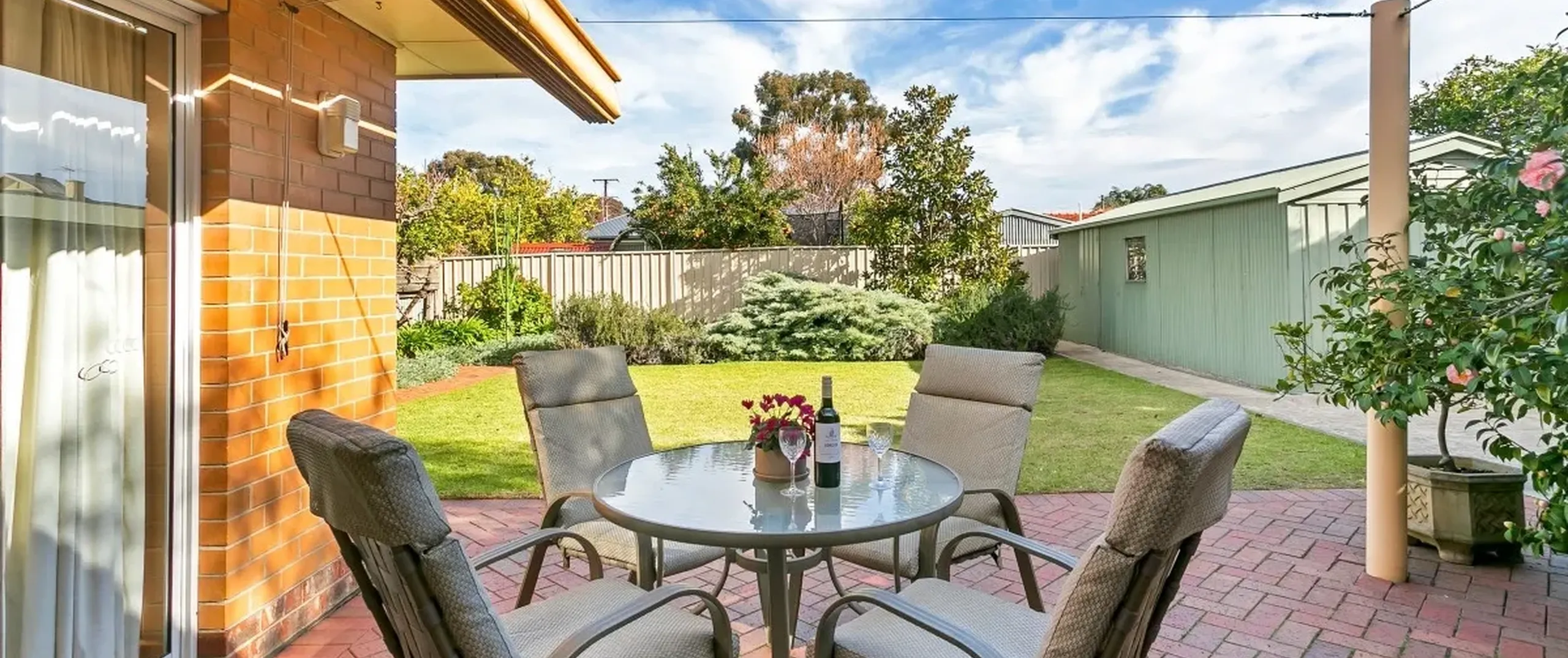 - Paved outdoor entertaining area with retractable shade-cloth roof